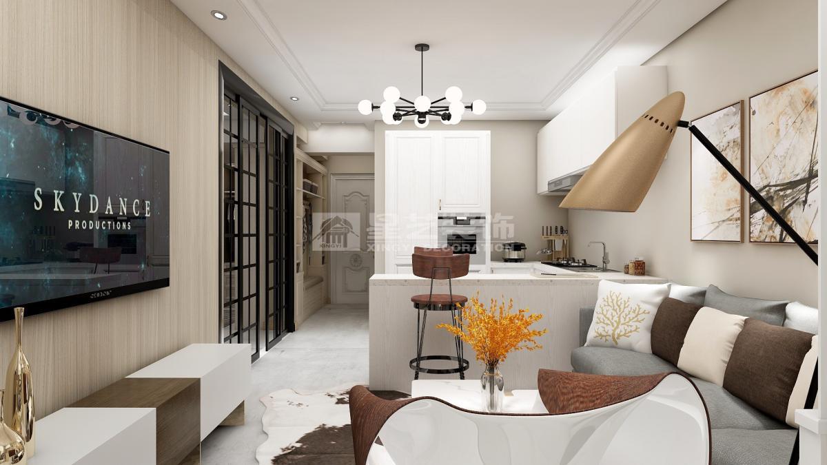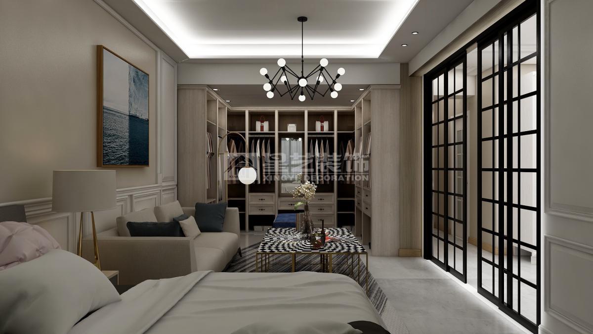本次方案整个空间都比较偏向女性化,无论是墙面的线条还是家居的款式和颜色都是有线条感,色调也是采用米色奶色为主,金色的家居配饰边框让整个空间看上去会更加的精致大气