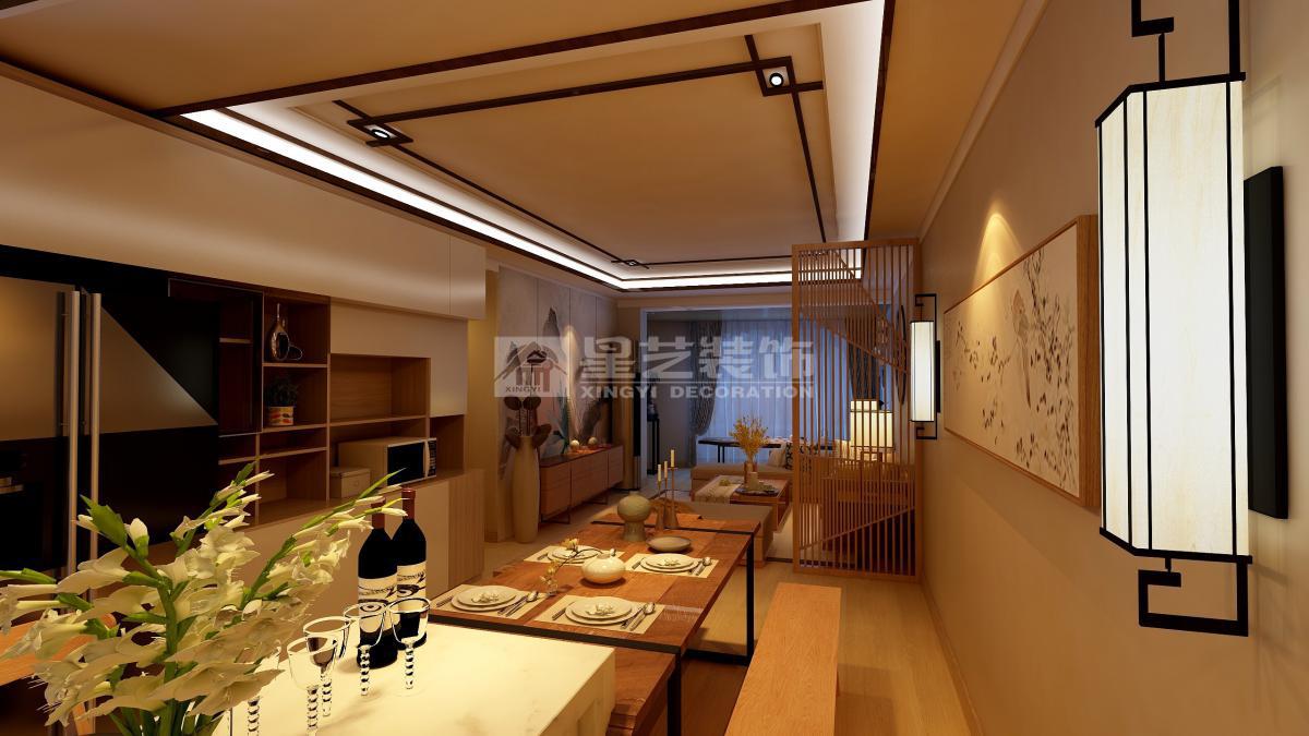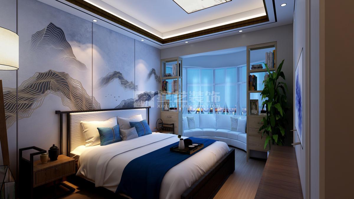 本次方案业主对中国的情节很浓重,所以我采用了一些新中式偏现代的一些木制作隔断和一个天花去装饰,主卧墙面山水的立面加上旁边弧形的飘台让人感觉特别的宁静,开放式的厨房与客厅更加的融合。