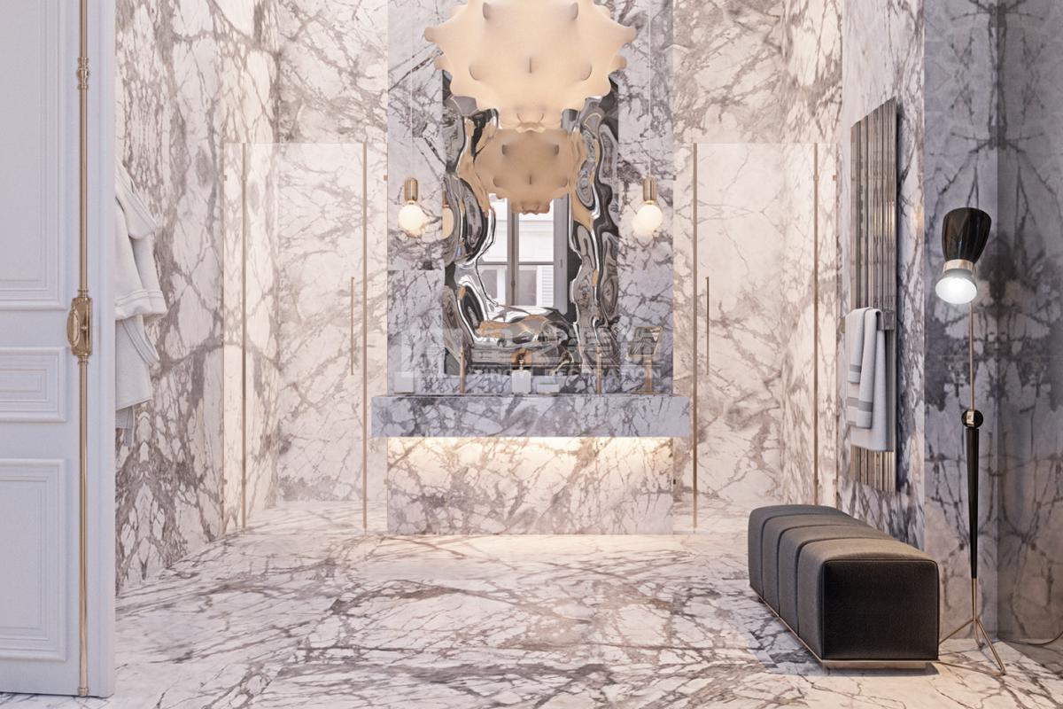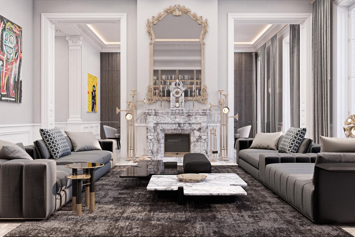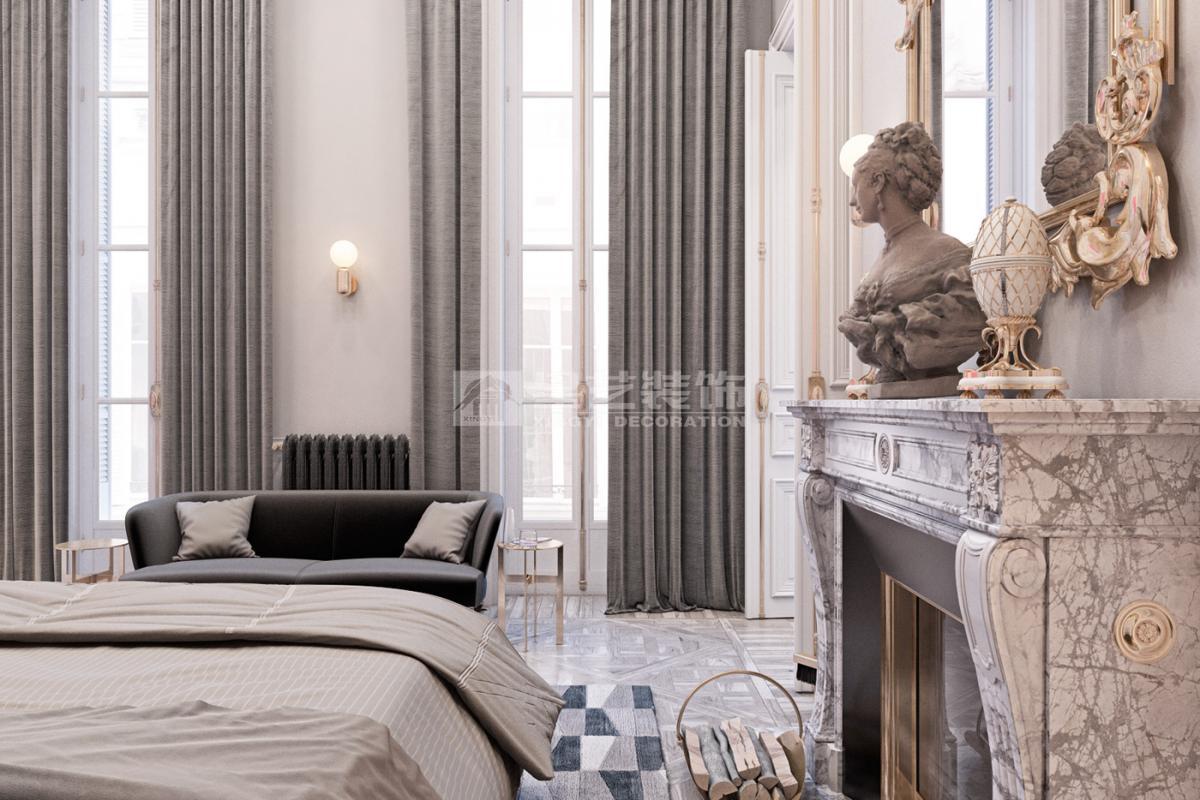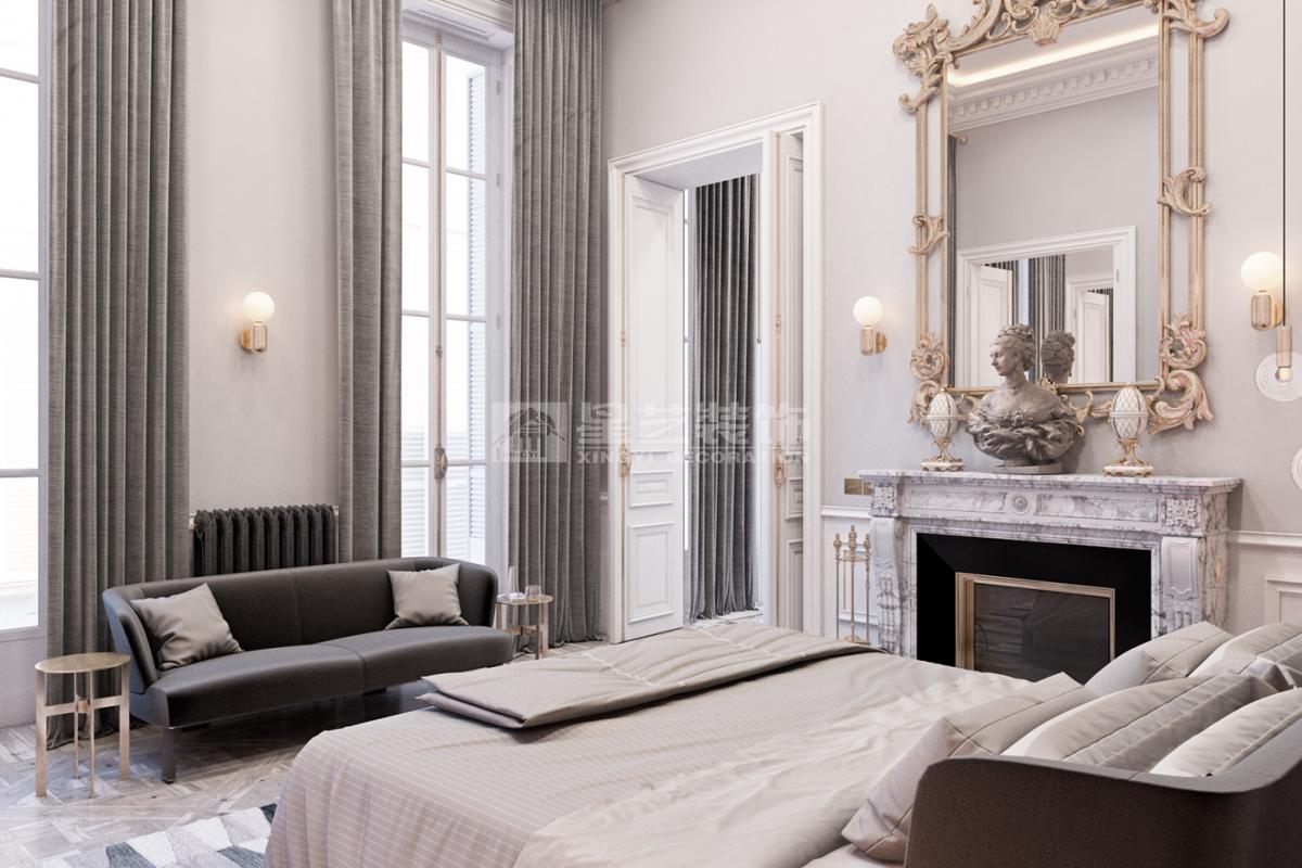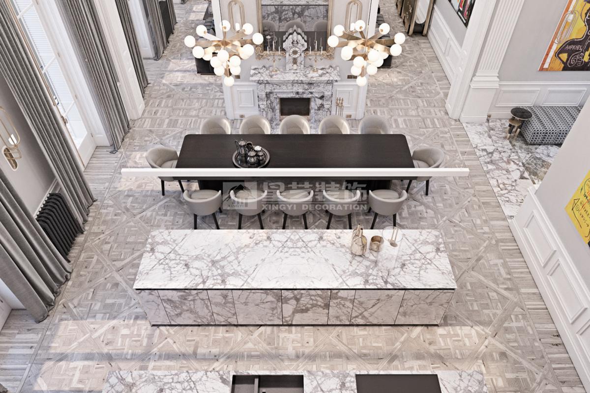 在造型选择方面,通常的法式轻奢风格都会添加曲线,这是法式元素里随处可见的一种设计,并且还结合了几何框架和方正矩形的造型,这样使整个设计变得刚中带柔,恰得好处。例如:沙发、茶水案几、电视柜的矩形框架装饰和圆形吊灯的搭配非常完美。