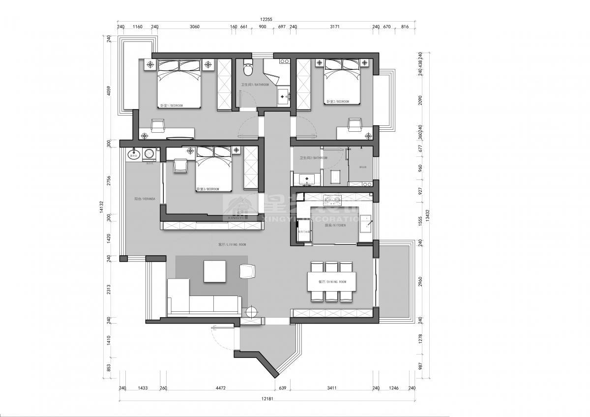 户型:三室两厅