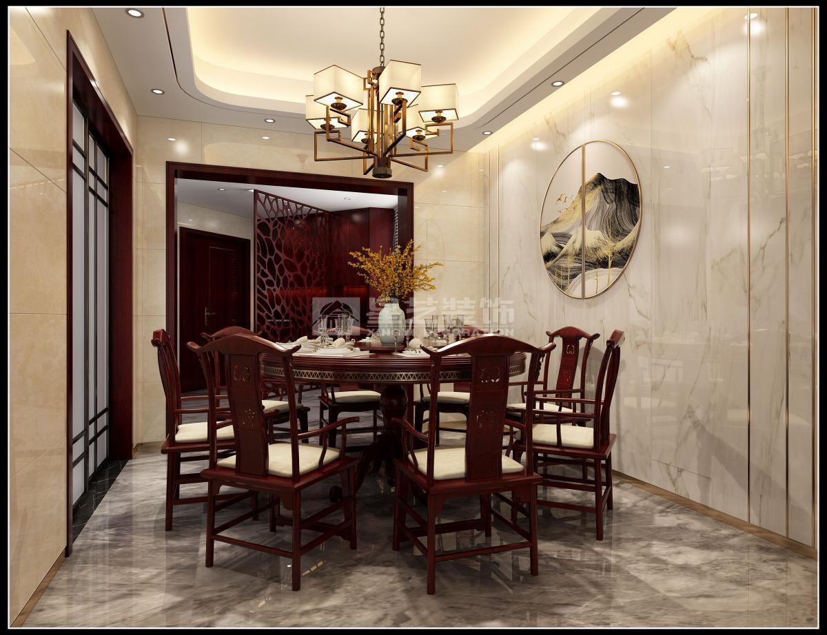 本案例的客户是一对潮汕客户,他们也沿袭潮汕传统,使用红木家具,而且客户又要求墙面全部贴砖。家具确定,墙面地面材料都确定,基本大的风格已经确定,而且设计没有特别大的发挥空间,同时红木家具很难做出时尚的效果,处理不得当的时候很容易造成乡村风。所以在选材的时候非常慎重,首先地面的地砖选用时尚的浅灰色,直接铺,没有任何的波打线,这样简约的时尚感比较容易出来,而且冷色调的灰色,可以削弱红木的暖色调,有个强烈的冷暖对比,沙发背景的墙砖采用和地面同款,让空间在视觉上有延伸感。电视背景这款选用带点青色和米黄的柔光砖,并且在切割上做了处理,镶嵌玫瑰金色不锈钢条,既高端又低调。在餐厅过道处采用纯米色砖,完全是协调家具和地面的冷暖的强烈对比,让整个空间和谐统一又有变化。另外本案是七口之家,对储物空间和各私人空间的私密性处理也有很多的调整和改动。