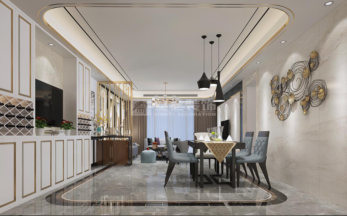 在本案项目中,客户是年轻的五口之家,崇尚现代时尚的生活方式,设计师结合户型的特点,重新诠释当代轻奢风格。