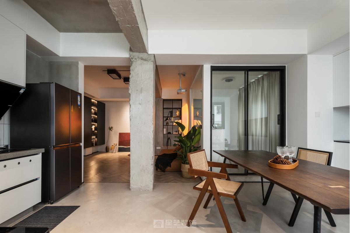 水泥之上斑驳的光影记录了岁月的变迁。 灰暗的房间,棕色的胶卷,诞生出黑白的艺术。 高级灰与棕色,缠绵缱绻间,凝结出一个温暖,轻松,包容的氛围。 在空间中现代装饰与粗糙介面的并存,体现一种时代的联结。 改造主要围绕现有格局的尖锐问题: 1.客厅空间小,不对流 2.面向厅的房门太多,没有形成稳定的客厅 3.过道太长 4.厨房太小,采光差 5.厕所小不足以满足当下人居住的需求 原来是三房格局,业主对卧室是N+1的要求,我的解决手法是打开不对流采光差的客厅裸露梁柱结构,于开放格结合是天然的屏障,再在空间中置入了一个盒子,也将厨房卧室原有墙面拆除,希望让光线延伸到客厅,由此空间的通风采光得到改善,卧室采用隐形门设计 使得空间更干净整洁,出于方方面面的考虑,把普通房门厕所门改到隐蔽区域,最大限度的从材料到格局去维护空间想表达的通透 对流 引光入室。 如此使得空间成为承载新婚夫妇个性的幸福居所。