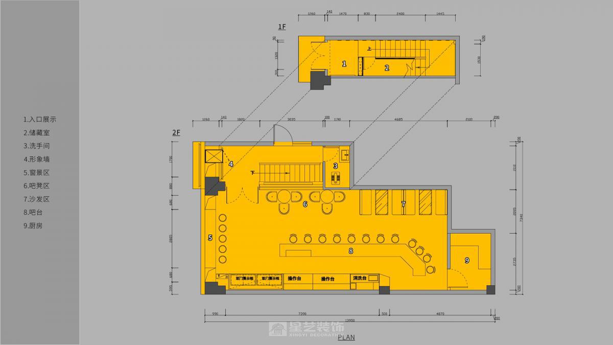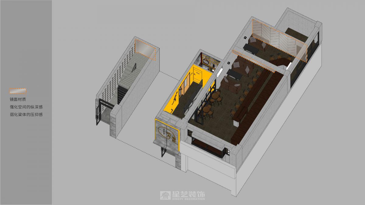 项目地址在海南海口,业主希望打造有调性和品牌特点的清吧。结合品牌的特质,空间中穿插了多种符号元素和品牌跳色,光影调性暗沉,极富工业气息。