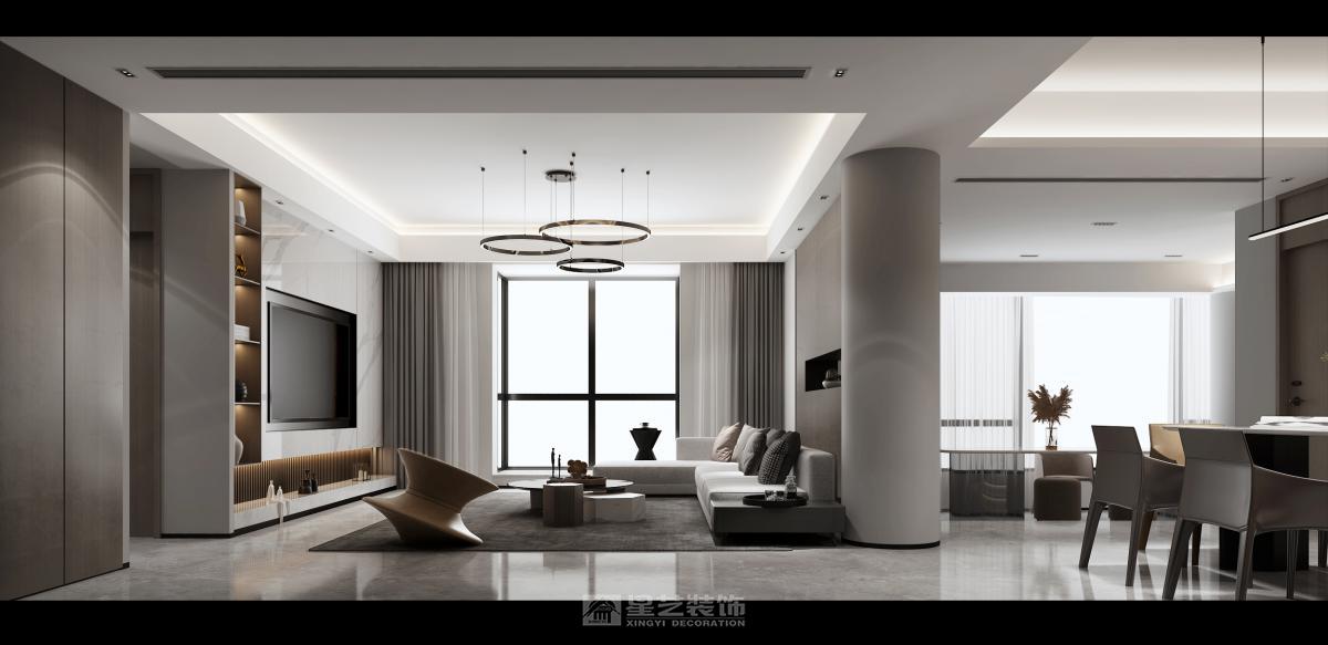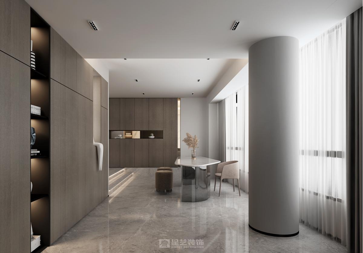 空间形式语言趋于干净简单,儿何体量关系单纯化,去除繁杂的元素,保持克制与冷静,空间形式语言趋于千净简单,遵从“减”与“简”的态度