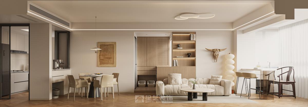 本案是奶油风设计风格,业主养了几只猫,有趣的是在设计的时候已经考虑好猫的游玩,饮食,排便,如何布局更方便,还有原厨房位置改成生活阳台,也增加了大量的储物空间,更贴合生活,原户型有很多凹角,我们也利用起来做装饰,也使空间更特别更富有原始格局的特点。