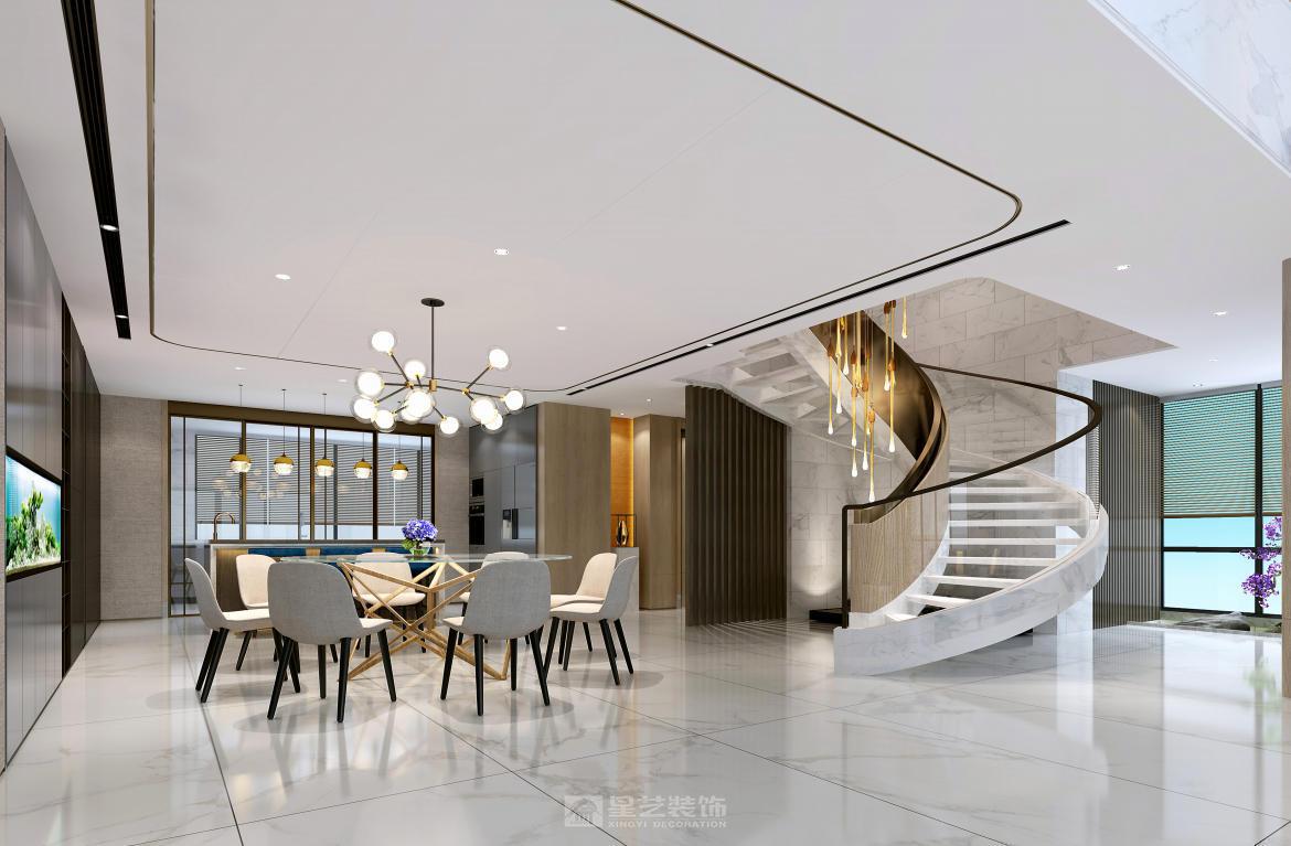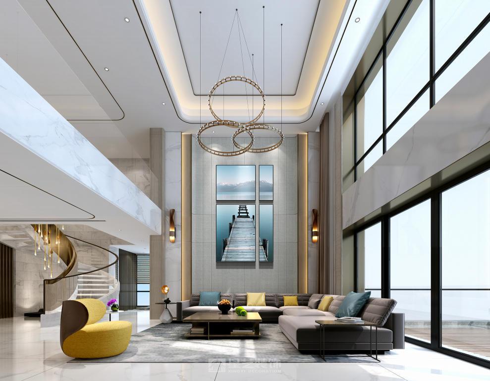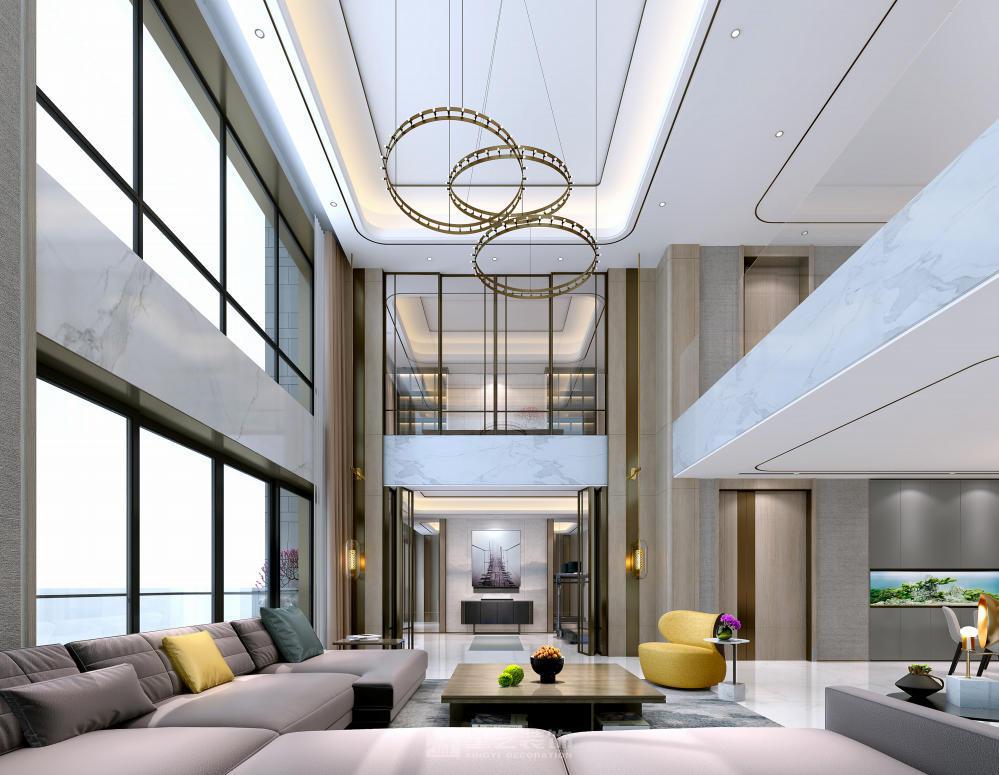 设计理念 轻奢风格的核心在于“简约中见精致”,摒弃传统复式的繁复装饰,强调以现代手法融合古典元素。设计注重开放性与私密性的平衡,通过旋转楼梯连接上下层,既增强空间流动性,又保留独立功能区的静谧感。材质选择上,天然石材、金属与丝绒的碰撞,既保留法式古典的厚重感,又赋予现代轻奢的精致气息。 核心元素 材质:天然石材(大理石)、金属(黄铜、不锈钢)、丝绒和玻璃是轻奢风格的标志性材质。这些材质通过纹理碰撞(大理石与金属的搭配)提升空间层次感,同时赋予现代气息。 色彩:以中性色调(黑白灰、米色)为基底,局部点缀墨绿、藏蓝等跳色,例如中空的背景挂画采用撞色拼接,既清新又显高级。 造型:家具和灯具造型简洁,注重功能性与美观性结合。无拉手柜体、悬浮式结构,以及环抱形沙发设计,通过柔化空间边界增添大宅艺术感。 空间布局要点 功能分区:采用中空两层式体块设计,将上下层增加交流互动,通过中空释放感知空间;楼梯玻璃护拦拉大视角,弧形增强动线流畅性。 自然采光:复式需最大化利用宽景窗,客厅采用落地窗设计,搭配两层一写到底帘强调大宅气派;同时通过中空的背景,顶天立地设计手法,增强空间立体感。 适用场景 轻奢风格复式大宅适合追求生活品质但不喜欢浮夸装饰的都市人群,尤其适合多代同堂家庭。其设计既满足现代都市对舒适度的需求,又能通过细节传递独特品味,半开放式厨房与餐厅的融合,既促进家庭互动,又提升烹饪效率。
