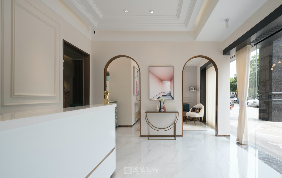 项目为工装美容院整体改造,不论从外观再到室内全方位用全案搭配形式设计,到后期的软装搭配做到事无巨细的落地,整体施工工期同时控制在1个月落地完工