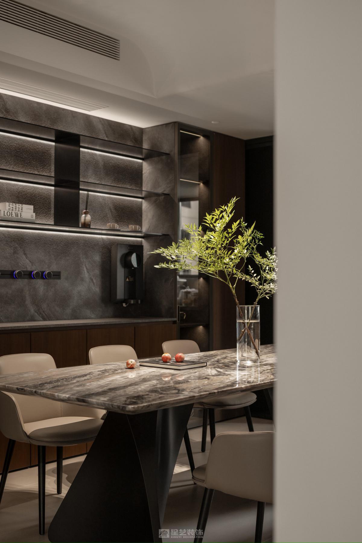 本案意式极简风,以其简洁、功能性和精致的细节著称,它追求“少即是多”的设计哲学,通过最少的的装饰创造最大的生活品质。这种风格强调空间的流畅性和使用的舒适性,非常适合追求高品质的人群。 主色调以高级灰,米白色,胡桃木色等为基础色调。胡桃木用于沙发背景墙,能营造出沉稳、高雅的氛围;米白色用于客厅电视背景,房间墙面。 皮质沙发是意式的典型代表,它的皮革质地柔软、触感极佳,且造型简约,线条流畅。 注重材料的质感,除了皮质,还有胡桃木护墙,大理石用于茶几台面,餐桌桌面等,其天然的纹理展现出低调奢华的质感,玻璃用于餐边柜的柜门,增加空间的通透感和时尚感。 “真正的奢华,是低调的优雅”~