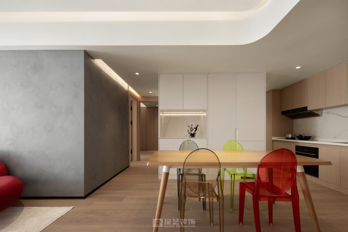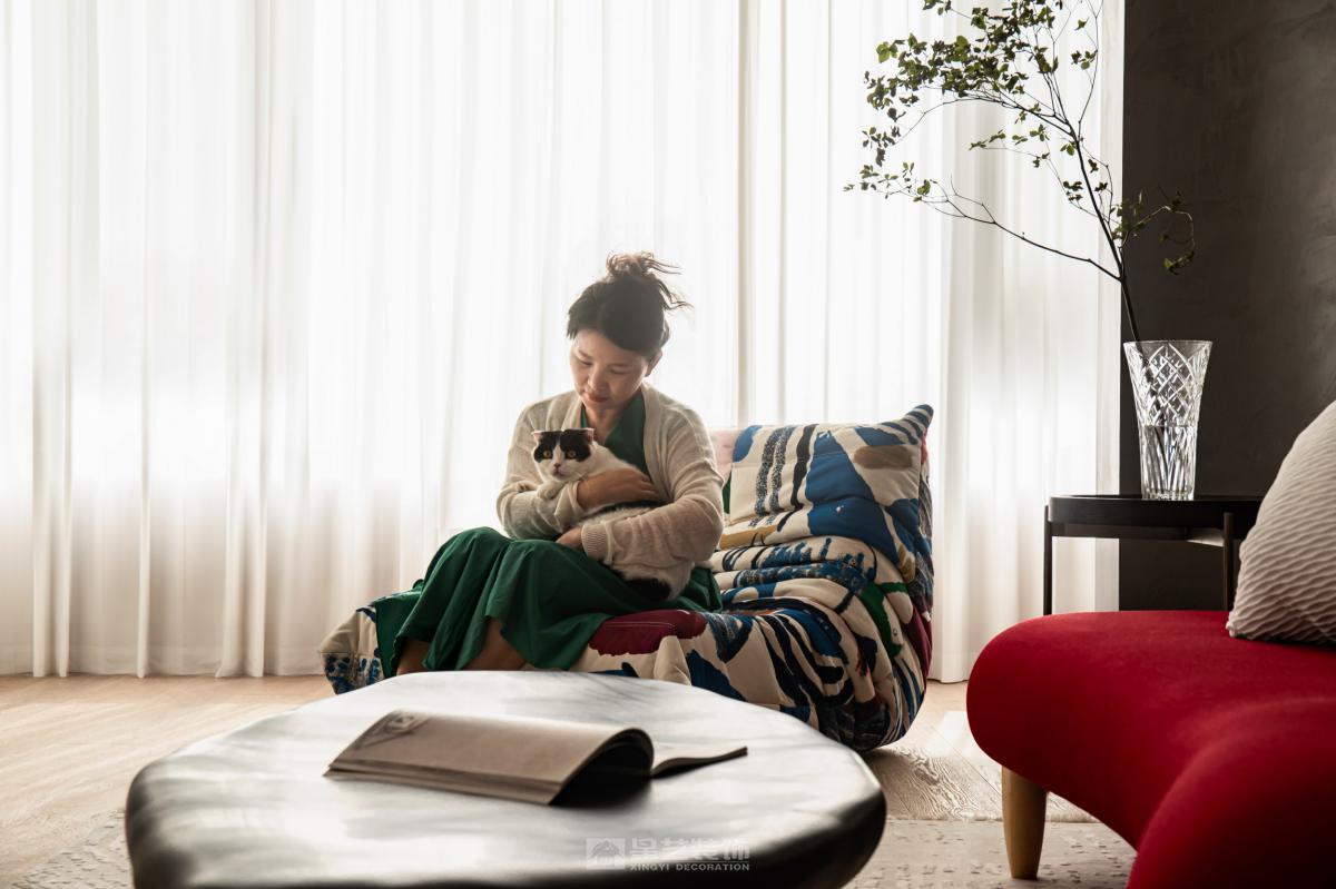 物以简洁而美,心因丰盛而悦--摒弃繁复的装饰 元素,家在心向往之的纯粹中,复原生活的痕迹,回 归内心的丰盈,追寻光的方向。 打破传统的生活方式,去繁从简,以人为本,促 进空间人与人的互动性,空间与自然之间的关系,还 原生活的本质。 家作为生活的载体与审美的合集,鲜明的家具颜 色与空间的碰撞,立体呈现着居住者独特个性且丰富的 生命状态。 这种回归于空间本质,在情感与精神维度 的情绪价值或厚重 、或轻盈的发散在空间设计中,被 设计师视为“生活的痕迹”。 家的营造过程,也顺理成章的 写起来。与其说是刻意设计,倒不 如称之为:尊循居住者的喜好与生 活习性将其理想中的生活映照进现 实。结构、色调、材质、光影等等 空间要素则各安其位,铺陈出家中 独特且动人的底色。