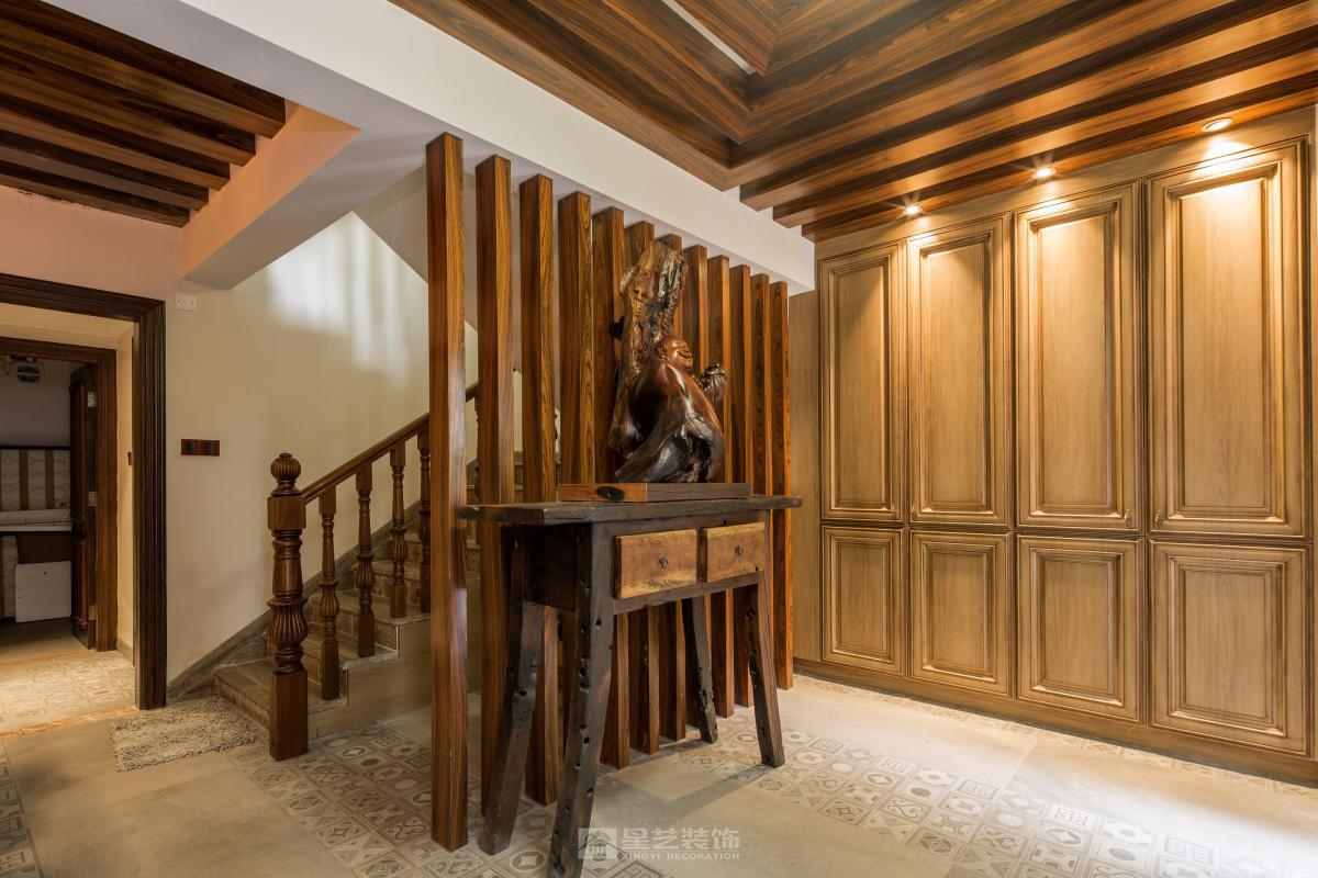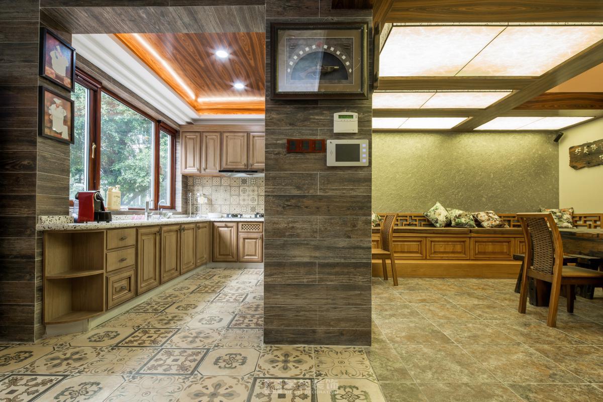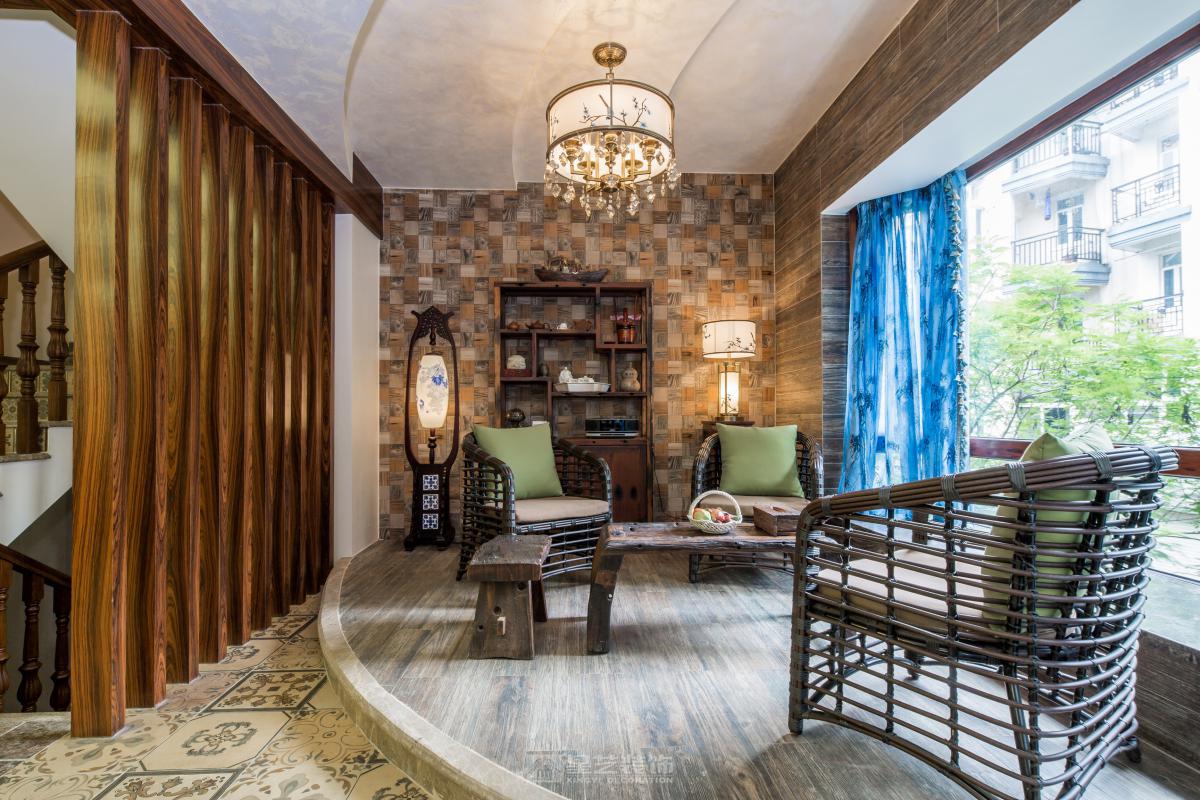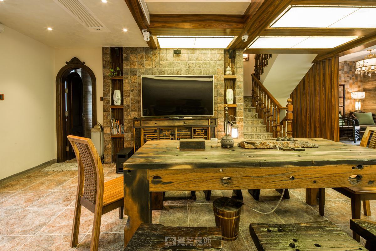 空间以木为魂。取原生古木为梁柱,展现榫卯结构的朴拙之力;辅以竹编、陶器点缀,于粗砺中见细腻。整体色调取原木褐、米白与靛青,似水墨浸润。檐下留隙,引天光树影入室,营造隐于自然的闲逸之境。