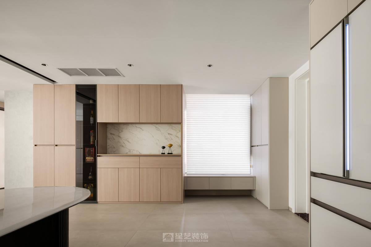 「当岁月沉淀为诗,家便成为安放心灵的禅意栖所」 这座为退休生活定制的极简主义居所,以四楼高度与花园达成诗意对话。整面落地窗化作天然画框,将四季流转的花园景致引入室内,晨起观露、暮色赏霞,框景成画的设计让养老生活始终与自然同频呼吸。 开放式餐厨空间以暖木色系为基底,隐藏式收纳系统保持视觉纯粹,L型操作台与餐厅形成环形动线,让烹饪时光成为与家人互动的温馨仪式。 独立茶室采用半透光柔纱玻璃推拉门隔断,原木茶桌,墙面内嵌书架收纳茶器。临窗特设观景坐向,让品茗时刻既有私密禅意,又与窗外绿意保持若即若离的联结。 设计以「减」与「融」为核心理念:减去冗余装饰,让空间成为养心容器;融合自然光影、功能关怀与生活美学,打造出可随岁月温柔生长的养老居所——在这里,每个细节都在轻声诉说:慢下来,好好生活。 【静界·栖园】不止是房屋,更是盛放银发岁月的时光容器。