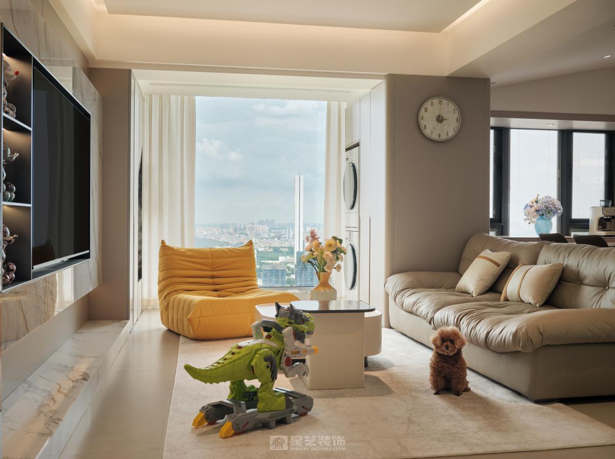 意式宅邸·童趣共生 —— 当现代意式美学遇见亲子互动乐园 一、 设计理念 家,绝非单一功能的容器。家是成年人的精神堡垒,亦是孩子的幻想王国。 本案旨在打破常规,以现代意式设计哲学为基底,进行一次大胆而温馨的融合实验。设计师精心雕琢一个同时盛放夫妻二人精致品味与两个孩子天马行空想象的空间。在这里,壁炉的静谧火焰、手办的艺术质感、乐高的缤纷碎片,不再是独立的元素,而是共同编织成属于四口之家的、独一无二的记忆符号。我们追求的,是一种理性与温情平衡、高级感与生活感共融的终极理想家。 二、 空间灵魂:极简构架与情感注入 1. 视觉基调: 意式极简风骨:整体空间摒弃冗余装饰,强调简洁有力的理性线条与低饱和度色块(如高级灰、米白、燕麦色),构筑宁静而富有质感的视觉高级感。 莫兰迪色温情:局部巧妙融入女主人钟爱的莫兰迪色系灰粉,通过手办展示柜、软装配饰等形式呈现,为清冷的空间注入一抹柔和、优雅的生活温度。 2. 光影魔术: 采用无主灯设计,保证空间顶面的绝对简洁。搭载智能调光系统,可根据不同生活场景一键切换模式:会客时的“艺术展厅”模式(高显色性、重点照明),与家人共度影院时光的“家庭影院”模式(低照度、氛围光),完美平衡仪式感与舒适度。 3. 情感焦点: 嵌入式电子壁炉:满足男主人喜好,不仅是视觉的焦点,更是家中温暖的象征,围炉夜话,凝聚家庭情感。 展示型收纳:将收藏(手办、书籍)转化为空间艺术陈设的一部分,讲述居者的故事与热爱。 三、 核心区域设计策略 1. 公共区域:引景入室与亲子剧场 窗景为画:利用大幅落地窗作为天然的取景框,将城市天际线或庭院绿意无缝引入室内。这里不仅是观景台,更将成为孩子们的自然观察站,在光影变化与四季更迭中,潜移默化地培养对自然的感知与责任感。 隐藏式游戏逻辑(核心创新): 巧妙利用楼梯下方空间,打造一个功能强大的隐藏式玩具收纳区。采用储物柜与分类格,引导孩子自主收纳整理,培养其责任感和秩序感。关上柜门,空间瞬间恢复整洁雅致;打开柜门,一个专属于孩子的创意游戏空间即刻开启。此设计将“玩”与“收”融为一体,让童趣收放自如,毫不违和。 2. 儿童房:成长型趣味空间 趣味上下床:不仅高效利用垂直空间,更为两个孩子创造了一个充满乐趣的“小堡垒”,承载他们快乐的童年记忆。双书桌设计:并排或对置布局,满足两个小朋友未来各自学习、阅读的需求,既保证独立性,又能相互陪伴,共同成长。 精致仪式感:细节处融入童趣元素,将儿童房同样塑造为一个精致的生活仪式场。 3. 主人套房:奢享静谧的私属领地 休闲阅读角:靠窗设置舒适的单人沙发与落地灯,打造一个专属于屋主的静谧角落,满足阅读、冥想、赏景的多元需求,让心灵得以栖居。 “奢侈品橱窗”式衣帽间:为女主人设计衣包收纳系统,搭配柔光灯带与镜面,最大化放大空间纵深感,每一次挑选衣物都仿若一场精致的时尚巡礼。巧妙整合男主人沉浸式电竞区,将电竞桌与衣柜结合设计,上方设置层架展示其珍藏手办。实现工作、游戏、收纳与展示的功能闭环,让爱好与生活皆不将就。 本案「意式宅邸·童趣共生」不仅仅是一次空间设计,更是一种生活方式的提案。它成功地证明了:高级的审美与活泼的童趣并非对立,而是可以共生共荣的和谐整体。我们通过理性的设计手法,注入感性的生活细节,最终打造出一个既能安放大人理想、又能守护孩子童真的有温度、有故事、有灵魂的家。