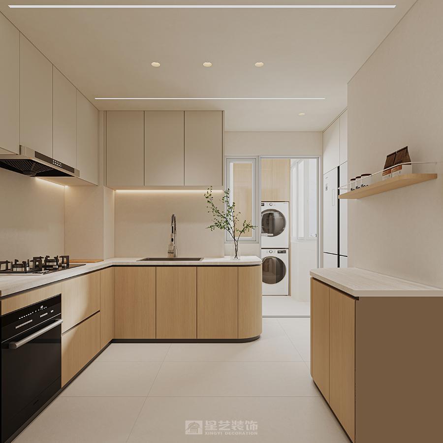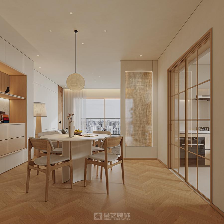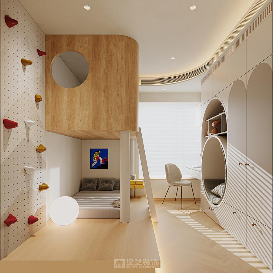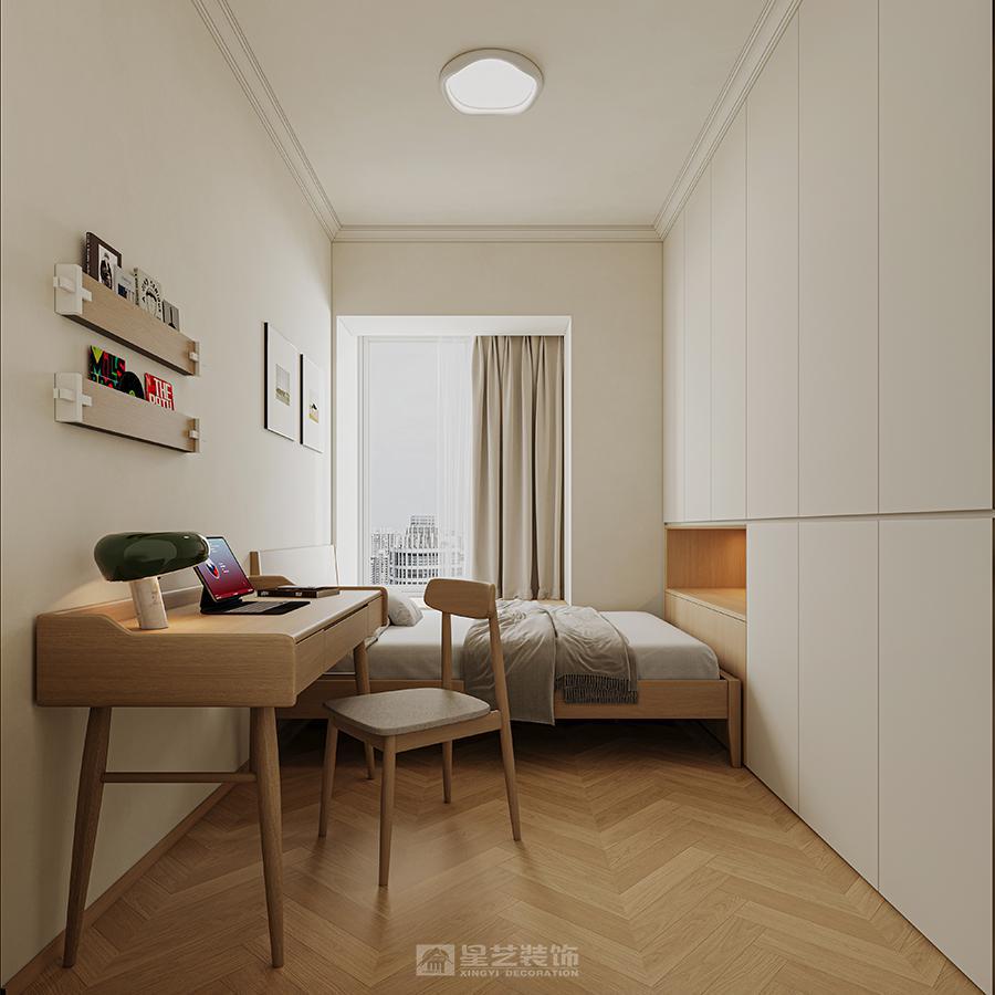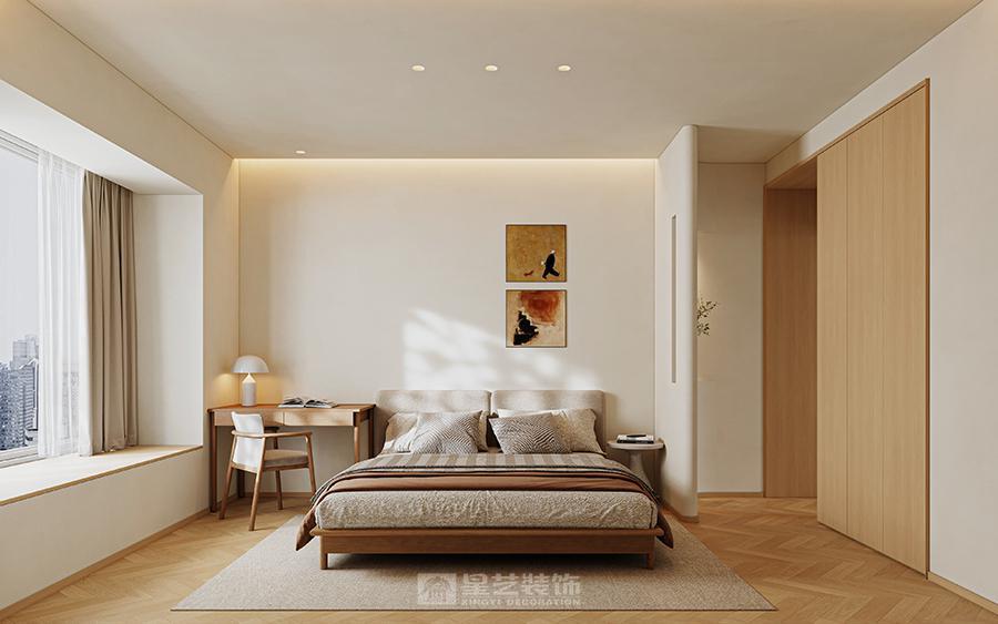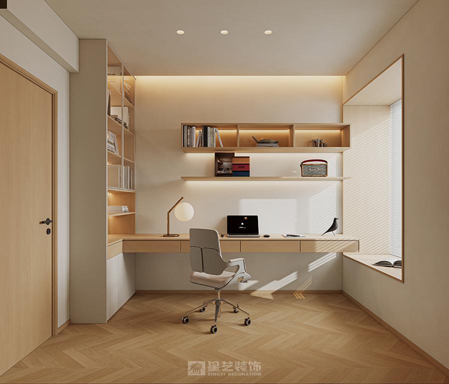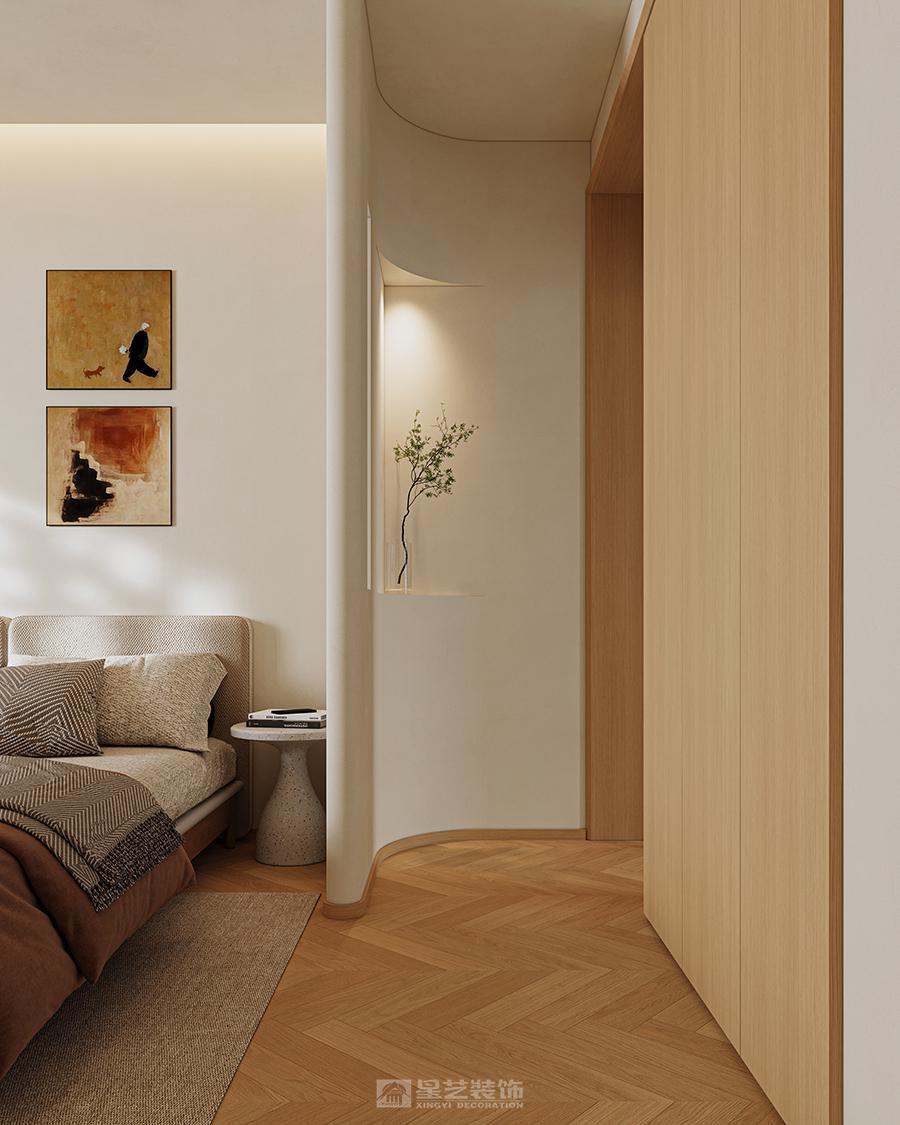 1. 无界通透的功能联动 以玻璃隔断、开放式柜体弱化空间边界,让客餐厨、书房等区域既独立又互通——比如客餐厅的半透玻璃墙既保障隐私,又让光线与视线自然流动,适配日常社交与独处的双重需求。 2. 温柔质感的松弛氛围 浅原木纹理+人字拼地板传递自然温度,搭配无主灯的漫射光(暗藏灯带+点光源),让空间在简洁中自带“软乎乎”的松弛感;局部木色柜体与白色墙面的比例控制,避免单调又不显厚重。 3. 隐形收纳的实用美学 全屋采用“嵌入式+定制柜”的收纳系统:玄关柜、卧室衣柜、书房置物架均与墙面一体化,既保持视觉整洁,又通过开放格、隐藏抽屉满足不同物品的收纳需求,让“整洁”成为空间的原生状态。 4. 全龄适配的细节温度 空间预留了灵活场景:主卧的简约调性适配成年人的静谧,儿童房的圆弧边角、趣味置物则兼顾安全与童趣;书房的长桌+移动柜体,可切换为办公、阅读甚至临时社交区,让家随生活节奏生长。 这套设计的核心,是用“减法美学”剥离冗余,让空间回归“舒适居住”的本质——无需刻意装饰,每一处细节都在传递“卸下疲惫,自在生活”的松弛感。