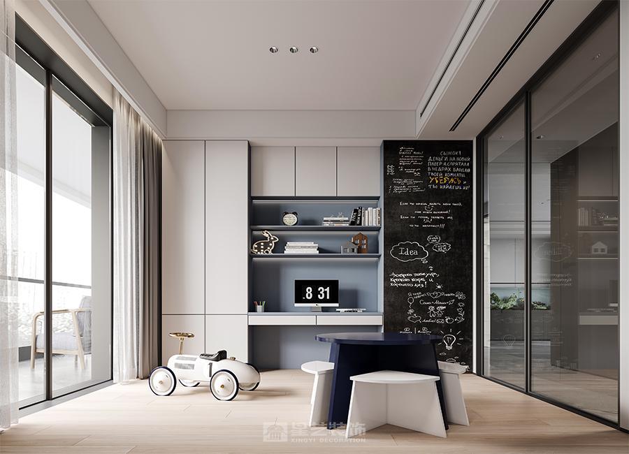 本方案以意式雅奢为基调,将简约质感与精致细节相融,打造兼具格调与温度的人居空间。 公共区域与主卧采用混油木皮墙板,温润木质肌理中和意式设计的冷冽,自然质感漫入空间,勾勒出内敛高级的奢雅氛围。 男孩房以蓝色为主调,定制蓝色高低床兼具实用性与童趣,满足休憩与玩耍双重需求;相邻打造蓝调学习空间,利落线条搭配柔和色调,为孩子营造专注又舒适的学习小天地。 整体设计平衡意式美学与生活本真,于平层空间里,铺陈雅致且惬意的日常。