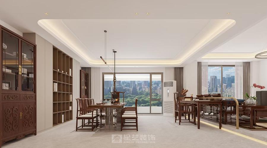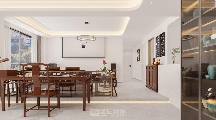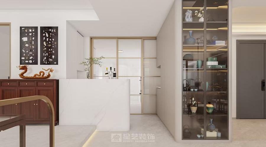 客户夫妻带母亲住,儿子大学毕业,小区还有一套给儿子用。全屋用中式原木家具。喜欢收藏岩柏,根雕,怪石。有一个两层高40方的大阳台。 新中式的风格,木色,白色,灰色。玄关夹丝玻璃的屏风,水吧台的设计,茶区与餐厅的结合。书法区的延伸