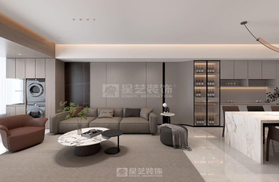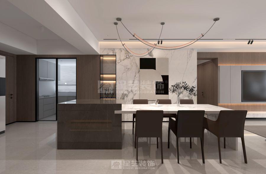 本案定位现代简约风格,风格只是一种手法,也是一种生活态度,它着力于表现简约、舒适、低调而内敛的生活品质,同时又不失高贵与奢华。 本案原结构分布空间较为呆板,屋主向往豪宅的宽敞大气,将空间进行完全开放,餐厅和厨房的位置与形式进行了调整,形成水吧吧台与餐桌功能的延伸;同时将原来的观景阳台推拉门拆除封落地大玻璃窗,将阳台纳入室内,扩大客厅的空间视觉,本案5楼楼层的天然优势,把屋外的绿化景色融入室内,为家增添一模靓丽的绿色,空间层次更加舒适。 以简洁的造型配上稳重的色彩,立面设计以经典大气为基本设计原则,营造一个温馨的家的氛围,也强调平面功能的完善性与布局合理性,真正体现功能至上的设计原则。