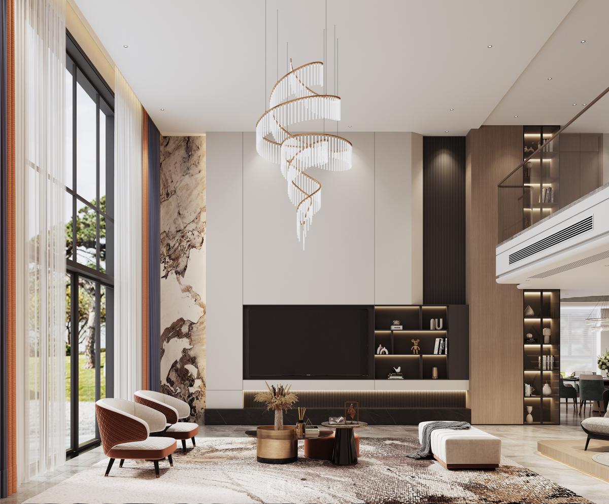 以“去繁就简,奢而不华”为原则,摒弃过度装饰,通过材质的碰撞、线条的勾勒与细节的雕琢,在简洁的空间架构中传递精致的生活格调。同时结合别墅挑高空间的优势,强化空间的通透感与纵深感,让功能与美学在每个区域自然融合。