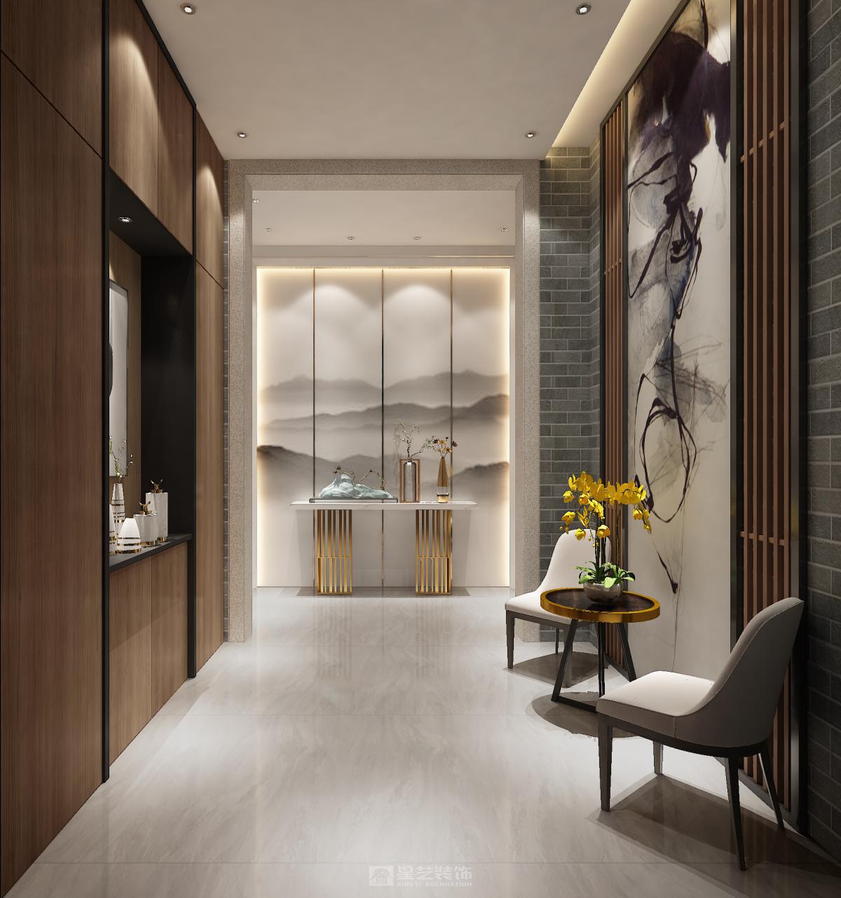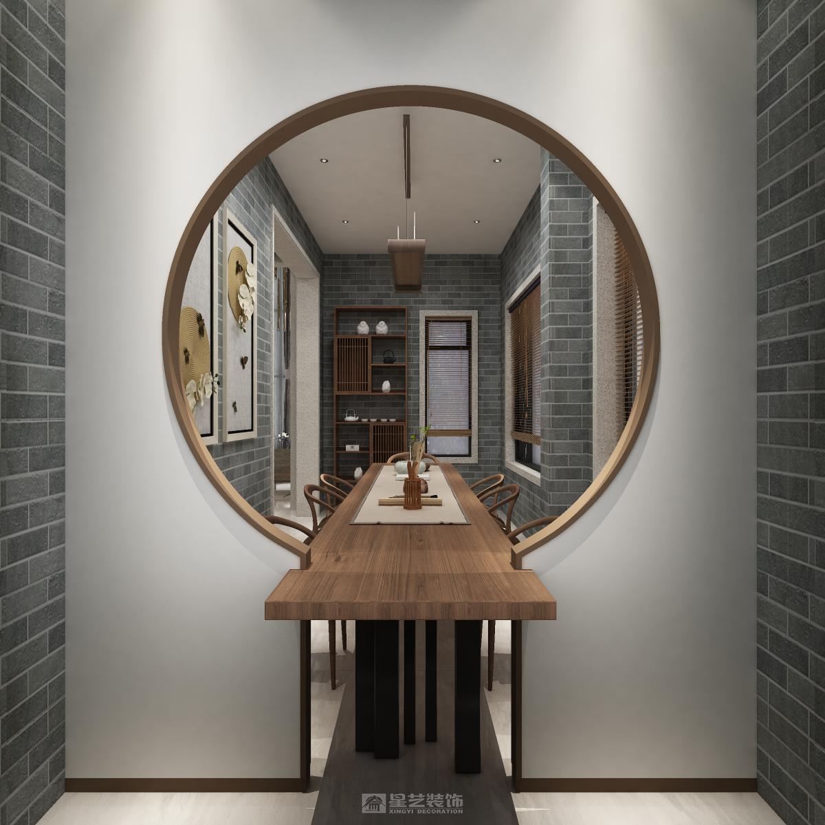 中式园林意境的室内转译 提取中式园林的漏窗、月洞门等经典元素,以金属边框的圆形月洞门作为空间隔断与取景框,形成“移步换景”的视觉效果,复刻中式园林的通透与层次美学;同时摒弃传统中式的厚重雕花,改用简约的实木家具、素色软装,让东方意境更贴合现代的轻盈审美。