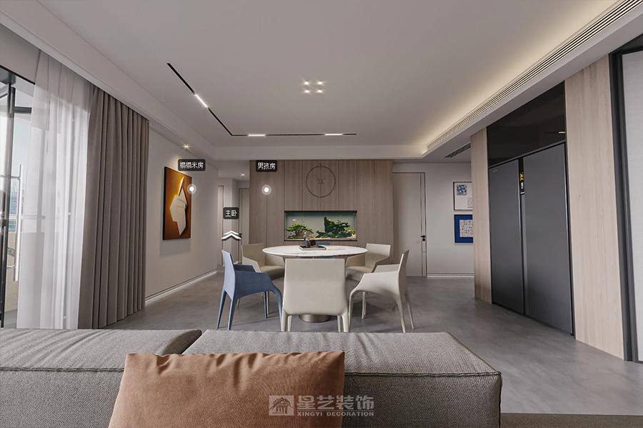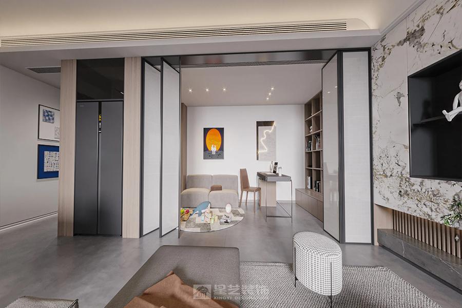 本案以客餐厅区域重新规划为重点,增加了书房,储物室,以及增加了厨房适用功能为主,用胡桃木色和潘多拉大理石相结合,营造大气端庄明亮舒适的家庭空间