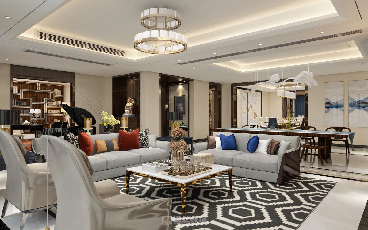 本空间以现代新中式为核心设计风格, 融合传统中式美学与现代设计语言, 打造出兼具东方意境与当代舒适感的居住空间,