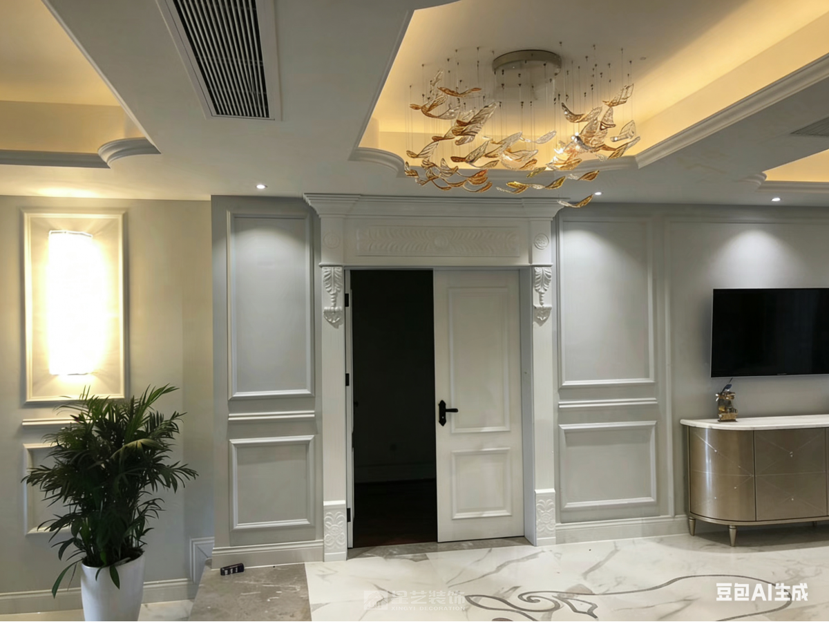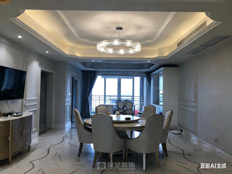 本设计聚焦大平层客餐厅空间,以轻奢法式风格为核心基调,融合法式古典的优雅浪漫与现代轻奢的精致质感,打造兼具仪式感与实用性的家居环境,同时通过材质、光影与布局的巧思,实现空间的通透感与高端质感的统一。