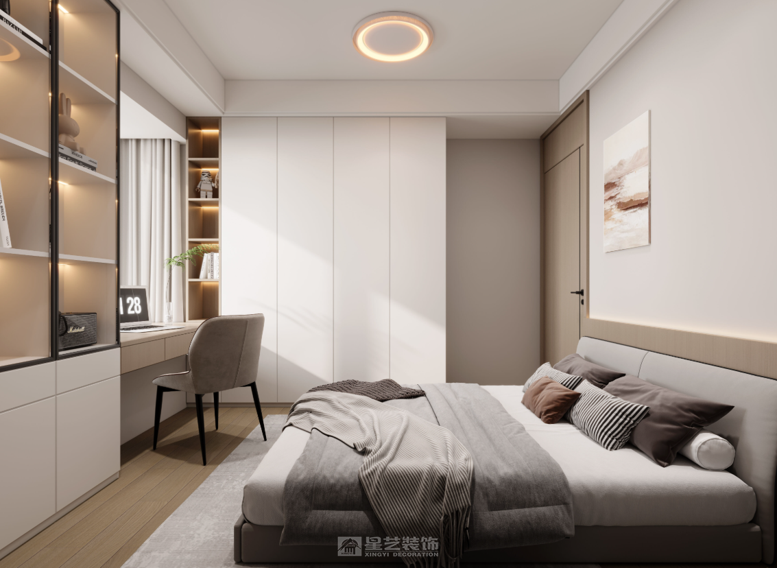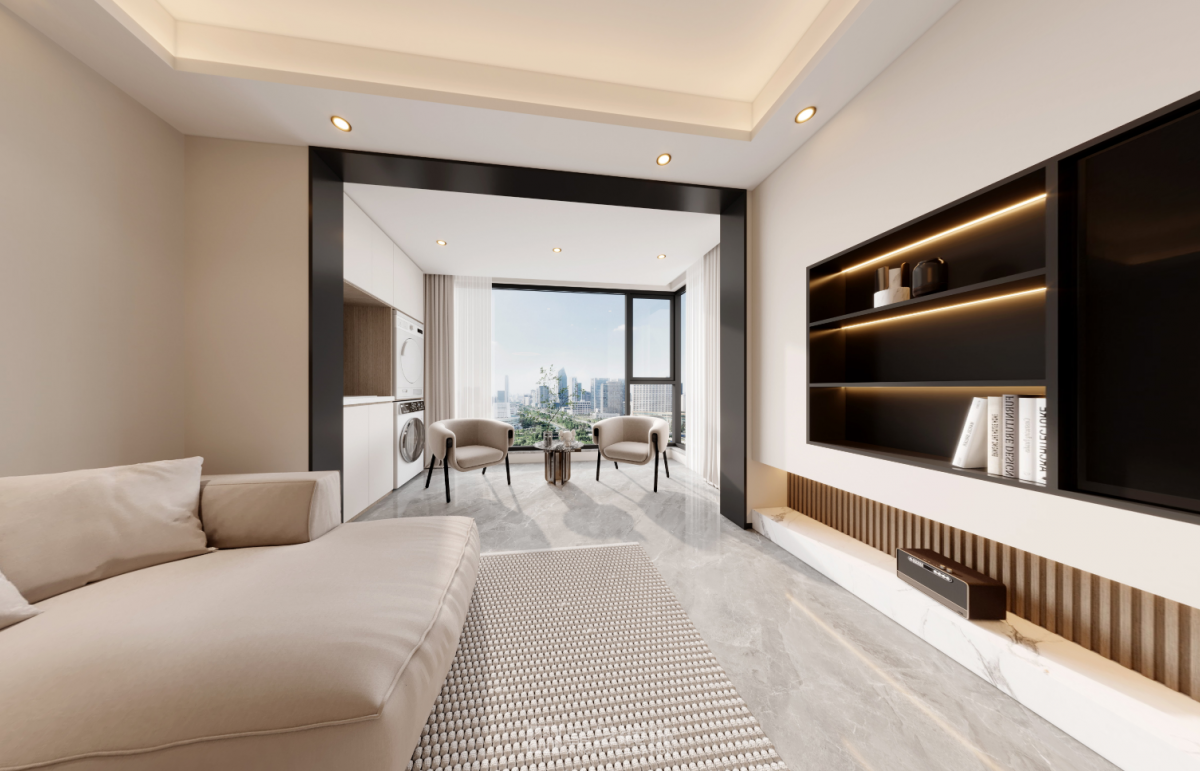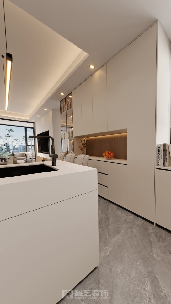 本案是为三口之家精心打造的亲子宅,便捷孩子上学同时,陪伴成长。原始格局彻底重构 ,通过开放式布局与灵动 洄游动线,将客厅、餐厨区构建为家庭互动核心区。父母在洗切烹饪时,视线与客厅联结,随时关注孩子玩耍状态,让陪伴与互动在流动的氛围中自然发生。