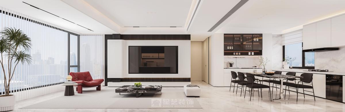 本空间设计以现代轻奢 + 极简主义为核心风格,整体遵循简约大气、质感至上的设计原则。空间采用开放式通透布局,弱化区域边界,最大化采光与视觉延展性;色彩上以米白、浅灰为基底,搭配深木色、黑色金属线条塑造层次,融入亮色软装点缀提亮,简约而不单调。材质甄选石材、木纹、金属、皮质等质感材料,软硬装结合兼顾美观与实用,细节处融入定制收纳、无主灯照明、精致软装陈设,打造兼具高级质感、舒适体验与功能性的现代宜居空间,平衡颜值与生活需求。
