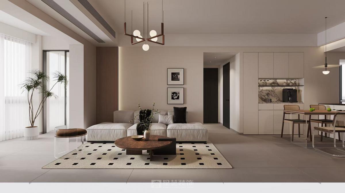 林深不语,以“栖于林壑,归于静谧”为核心理念,将山林的清幽意趣与现代人居的松弛感深度融合,让居者于无声处卸下疲惫,在静谧安然的氛围里,寻得内心的澄澈与归处;本案是一对新婚小夫妻 又帅又美,规划先享受几年二人世界,暂时不要娃娃 整体设计既实用又有调性,开放式厨房增加两人互动空间,加强空间开阔感于视野,暖白色搭配胡桃木色,温馨不失优雅