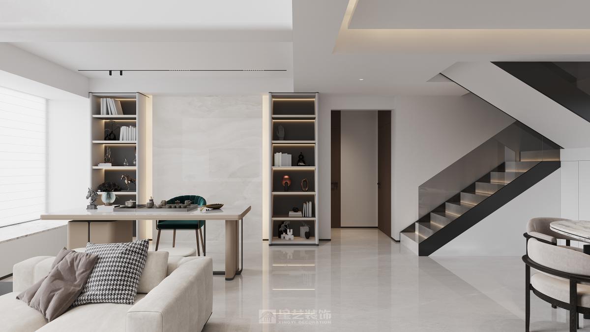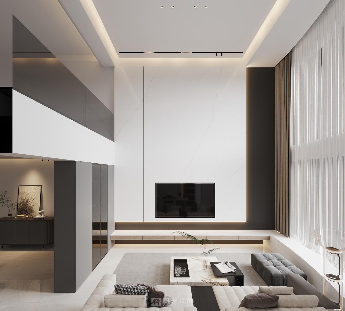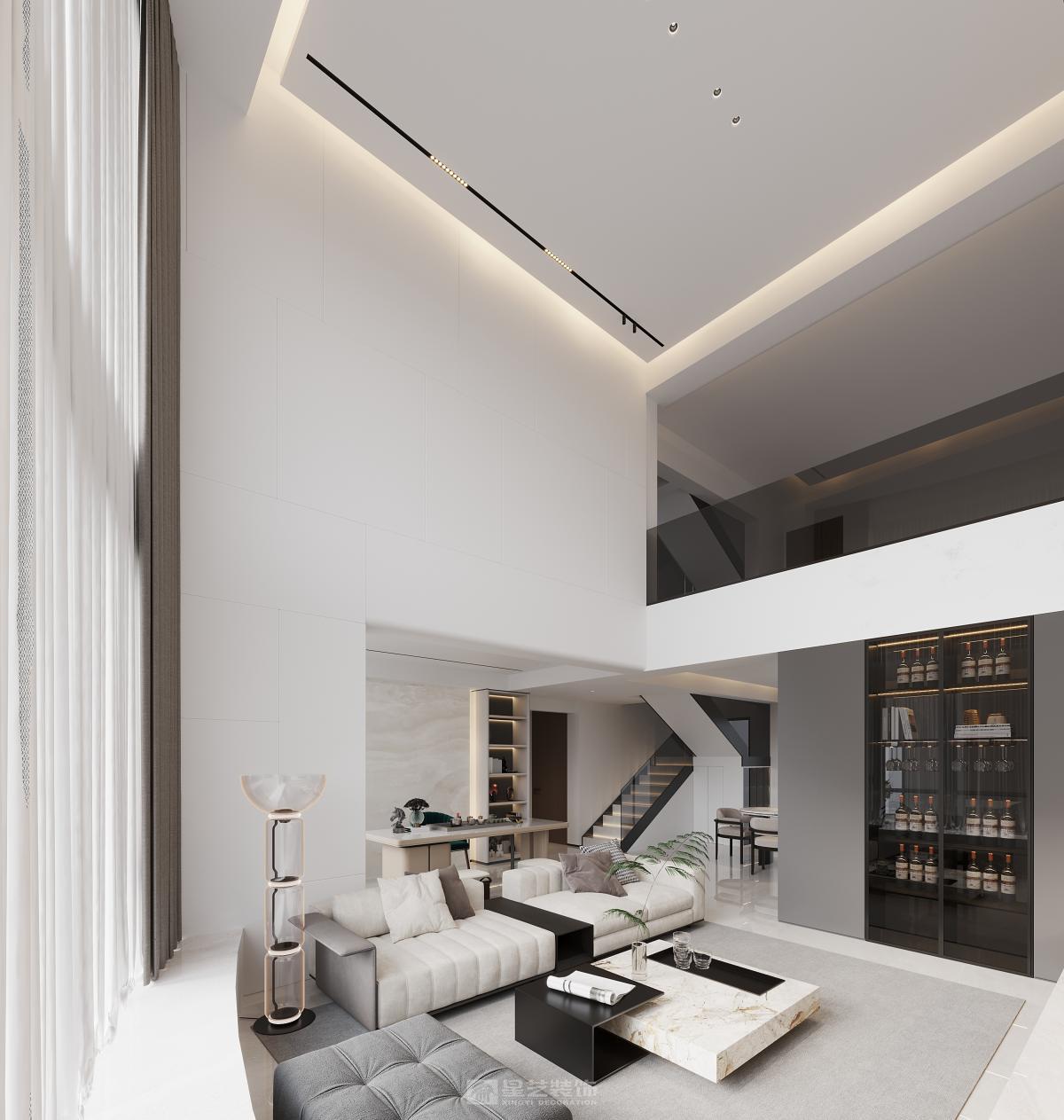 挑空的客厅大气豪华,风格简约,色彩明亮。