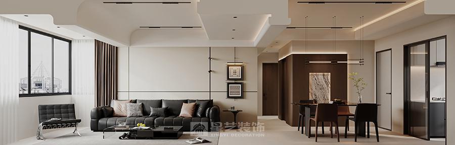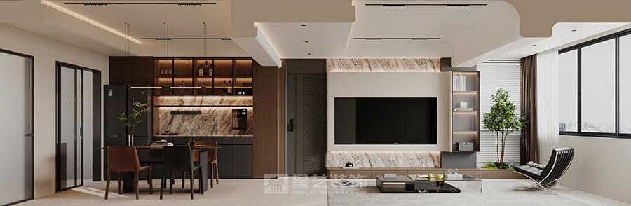 整体风格与色彩 简洁明快:设计摒弃了繁琐的装饰,追求简洁流畅的线条和纯净的色彩搭配。以白色、米色等浅色调为基底,营造出明亮、宽敞的视觉感受。 对比与和谐:在简洁的基底上,通过深色的家具和局部的大理石纹理进行点缀,形成鲜明的色彩对比,既突出了空间的层次感,又保持了整体的和谐统一。 材质与质感 高品质材质:选用大理石、金属、玻璃等现代感强烈的材质,提升空间的品质感和时尚气息。大理石电视墙、玻璃茶几等,都彰显出简约而不失高雅的格调。 质感对比:不同材质之间的质感对比也是设计的一大亮点。如柔软的沙发与坚硬的金属灯具、光滑的大理石与粗糙的墙面涂料等,这些对比不仅丰富了空间的触感体验,也增加了视觉上的趣味性。 空间布局与功能 开放式布局:客餐厅采用开放式布局,增强了空间的通透感和互动性。无论是家庭聚会还是朋友来访,都能轻松应对,营造出温馨、融洽的氛围。 功能分区明确:虽然空间开放,但各个功能区域划分明确。客厅以沙发和电视为中心,是休闲娱乐的主要场所;餐厅则围绕餐桌展开,是家人共享美食的地方。