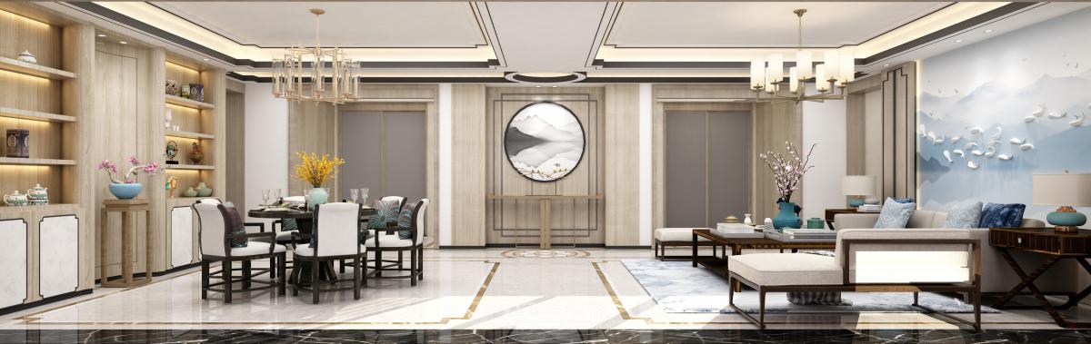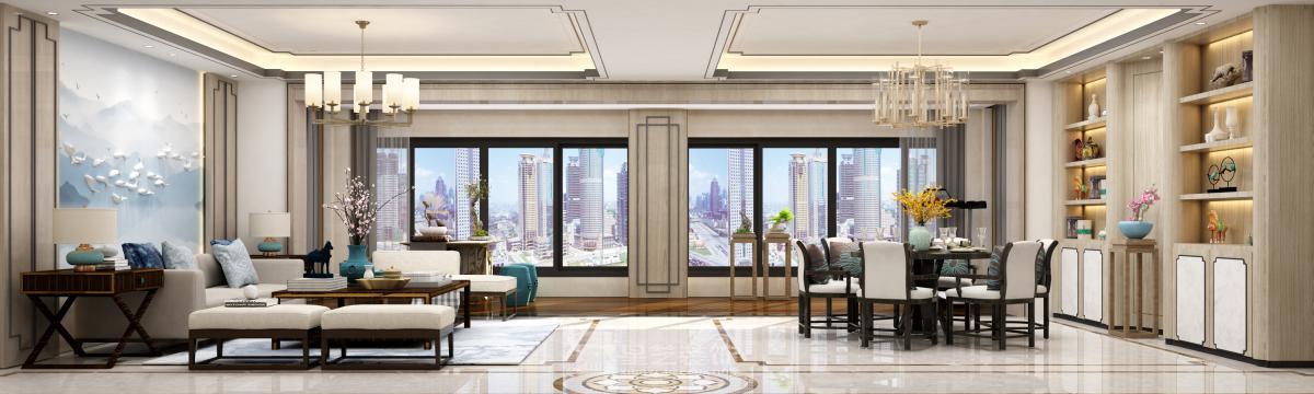 于都市高阁中,以现代流动空间为载体,融入屏风、框景等东方意趣。通过木与石的温润对话、光影的韵律流转,营造大隐于市的宁静与诗意栖居。
