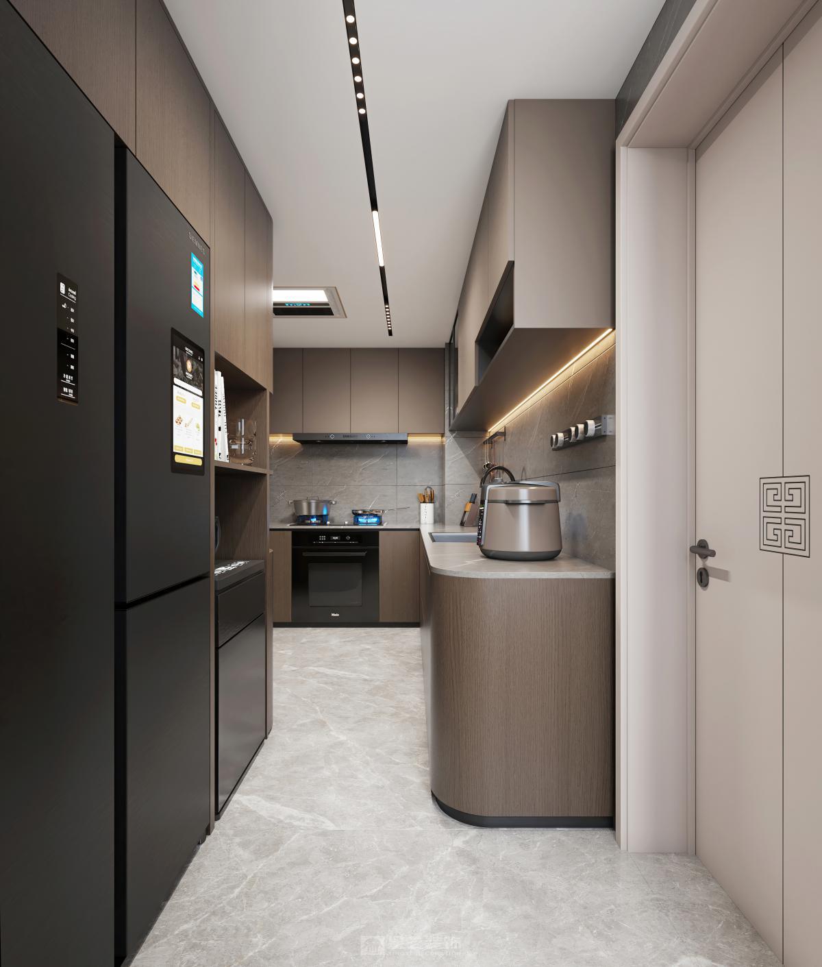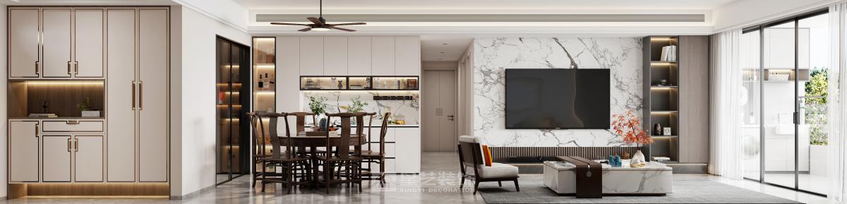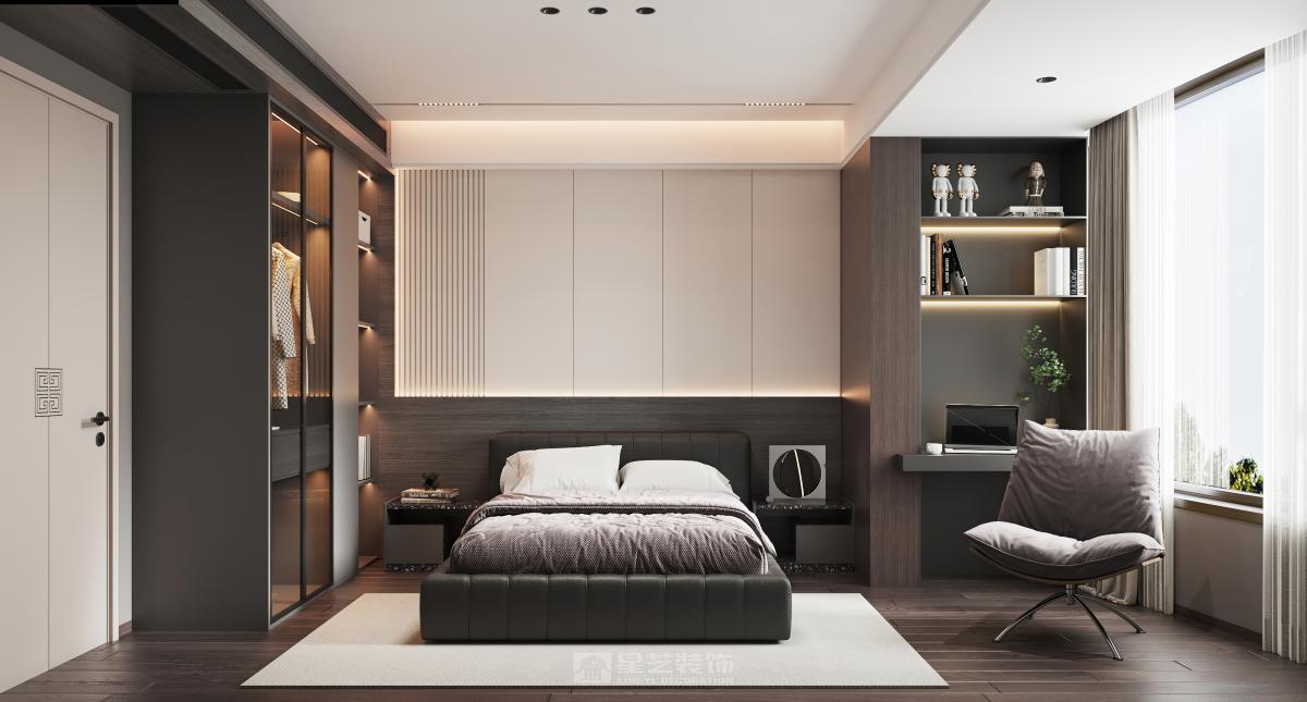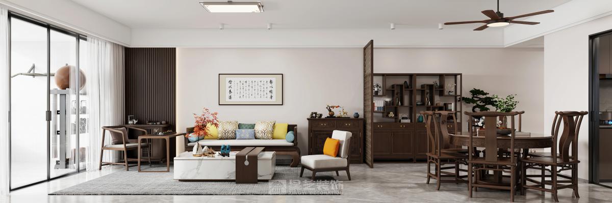 本设计采用现代新中式风格,旨在为居住者打造一个简洁舒适又极具品质感的空间。 空间布局上,秉持开放性原则,减少不必要的隔断,使各功能区自然融合,营造出流畅开阔的活动动线。客厅、餐厅、厨房等区域相互贯通,视觉上更显通透大气。 造型方面,遵循“少即是多”理念,运用简洁的直线条与基本几何形状,无论是家具轮廓还是装饰细节,都展现出利落大方的姿态,去除繁杂,尽显纯粹之美。 色彩搭配以中性色为主,如沉稳的灰色、纯净的白色以及深邃的黑色,在此基础上,适当选用少量高饱和度色彩作为点缀,增添空间活力与层次感,整体色彩组合简约且和谐。