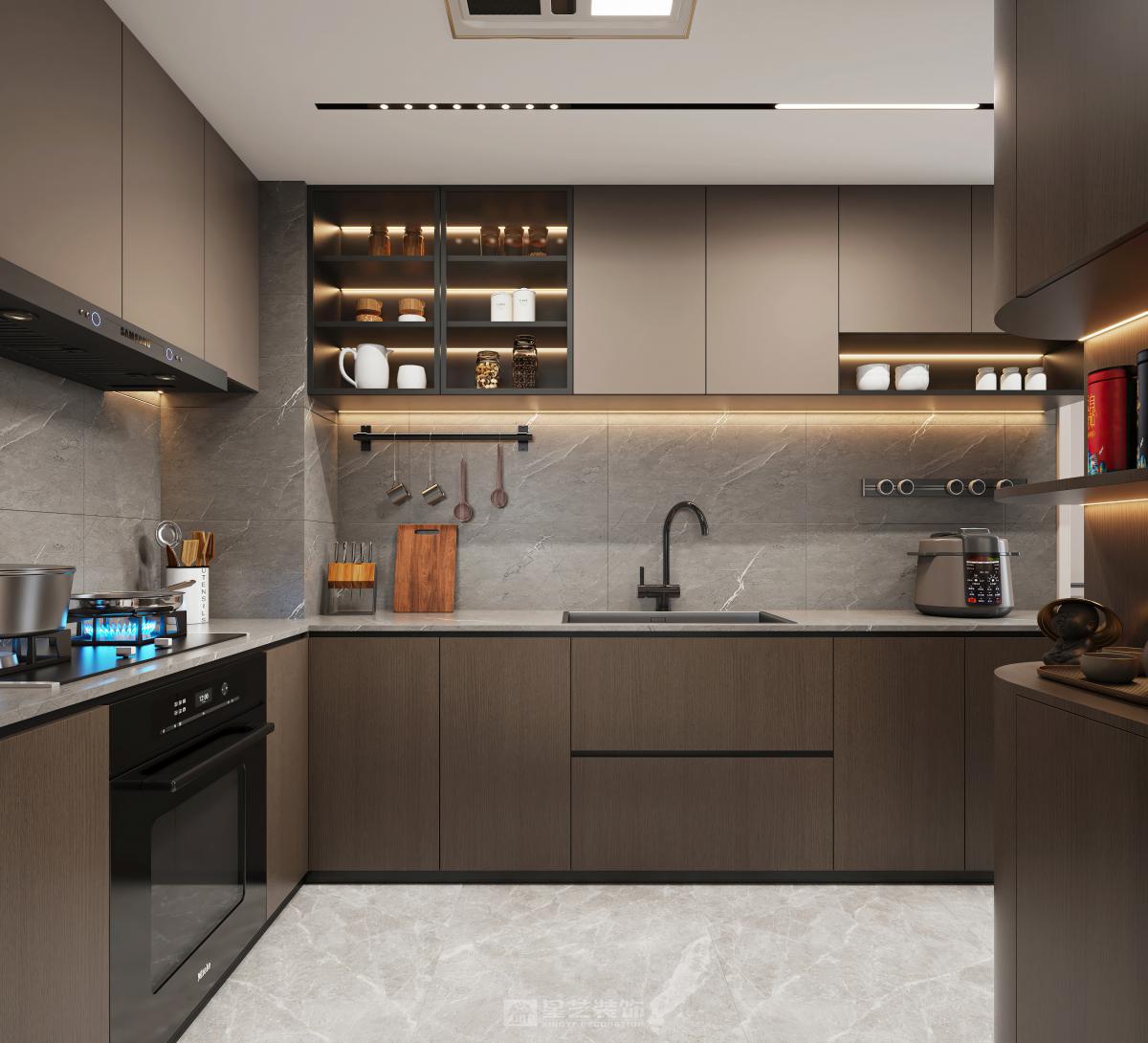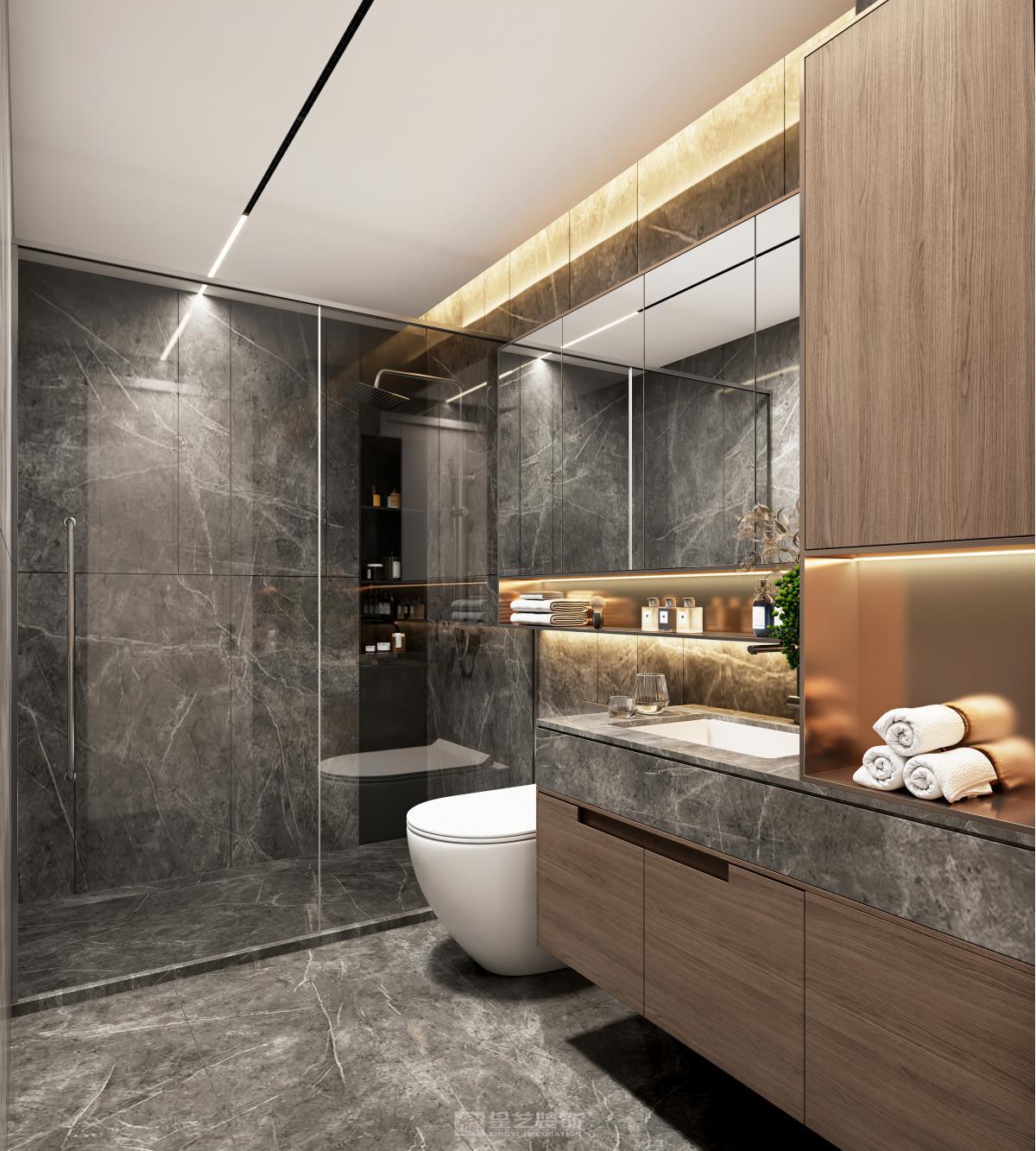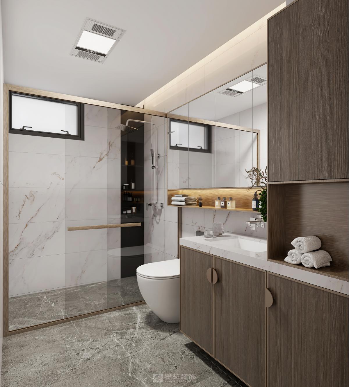 本设计采用现代新中式风格,旨在为居住者打造一个简洁舒适又极具品质感的空间。 空间布局上,秉持开放性原则,减少不必要的隔断,使各功能区自然融合,营造出流畅开阔的活动动线。客厅、餐厅、厨房等区域相互贯通,视觉上更显通透大气。 造型方面,遵循“少即是多”理念,运用简洁的直线条与基本几何形状,无论是家具轮廓还是装饰细节,都展现出利落大方的姿态,去除繁杂,尽显纯粹之美。 色彩搭配以中性色为主,如沉稳的灰色、纯净的白色以及深邃的黑色,在此基础上,适当选用少量高饱和度色彩作为点缀,增添空间活力与层次感,整体色彩组合简约且和谐。