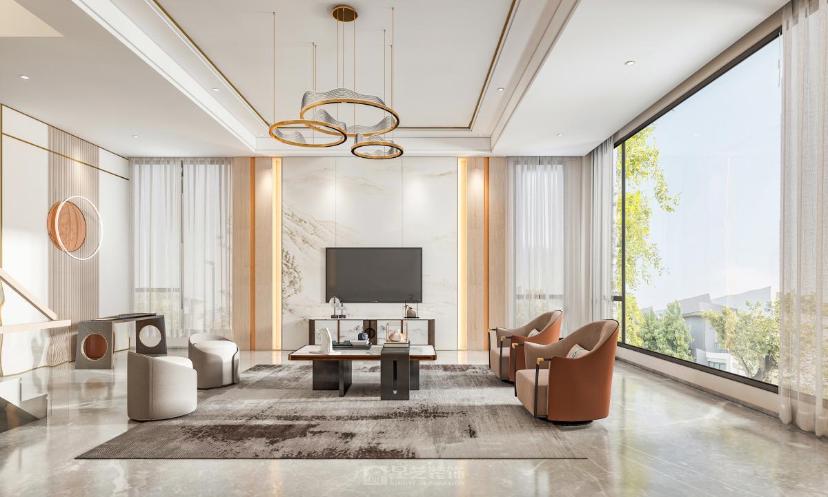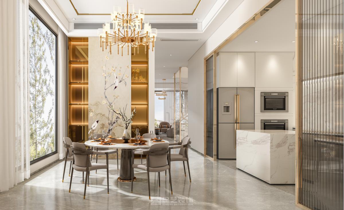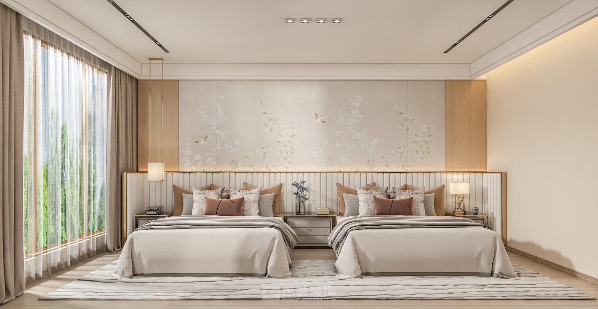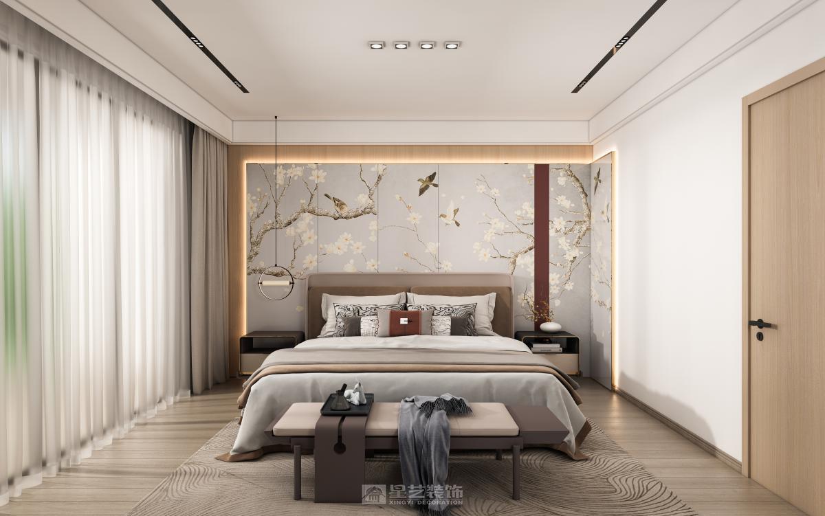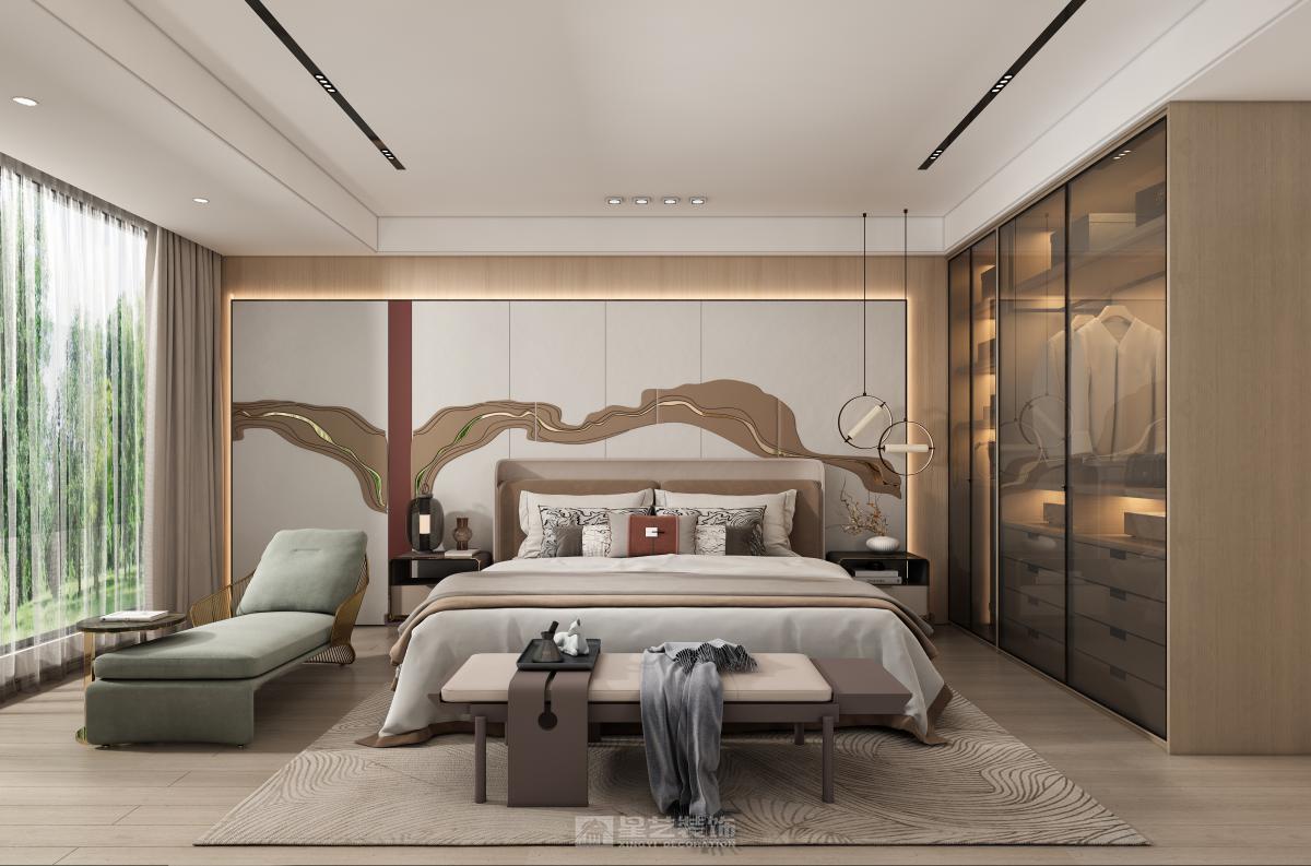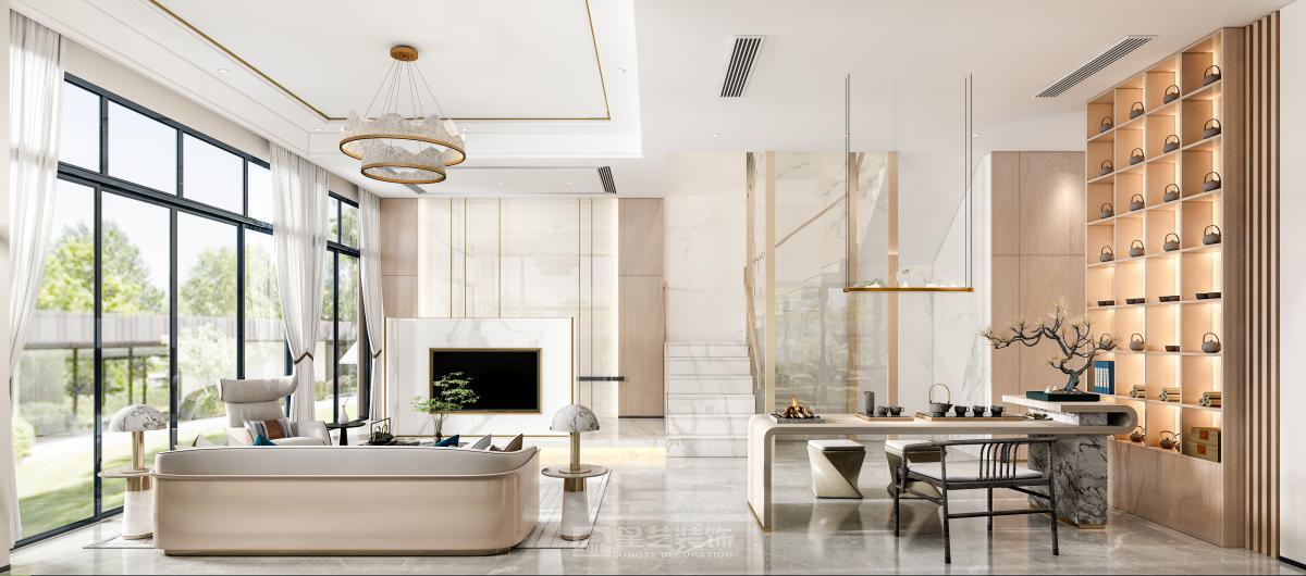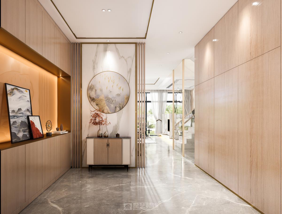 中式结合轻奢,达到新中式的新格调,又有轻奢的简约现代效果。 利用浅色调结合温馨的原木色,让空间更加简约大方。