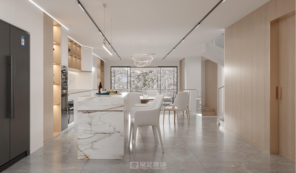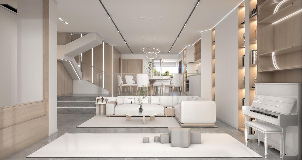 为350方别墅构筑开阔通透的流动空间。以纯粹岩板、温润木饰与隐形收纳形成块面对话,通过定制化极简线条与光影序列,营造沉静而富有呼吸感的奢居意境。