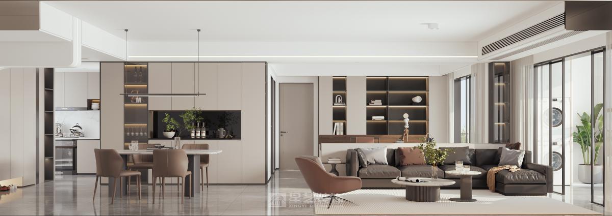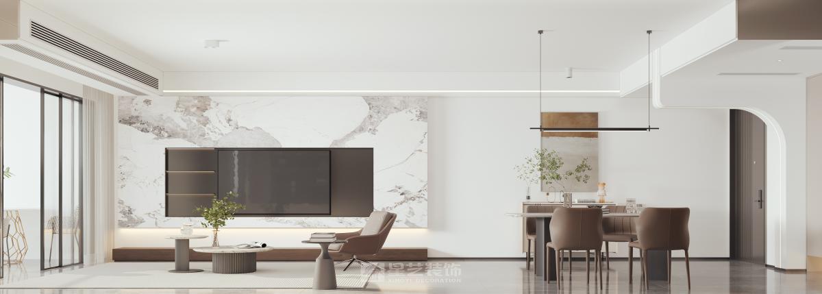 本设计采用现代简约风格,旨在为居住者打造一个简洁舒适又极具品质感的空间。 空间布局上,秉持开放性原则,减少不必要的隔断,使各功能区自然融合,营造出流畅开阔的活动动线。客厅、餐厅、厨房等区域相互贯通,视觉上更显通透大气。 造型方面,遵循“少即是多”理念,运用简洁的直线条与基本几何形状,无论是家具轮廓还是装饰细节,都展现出利落大方的姿态,去除繁杂,尽显纯粹之美。 色彩搭配以中性色为主,如沉稳的灰色、纯净的白色以及深邃的黑色,在此基础上,适当选用少量高饱和度色彩作为点缀,增添空间活力与层次感,整体色彩组合简约且和谐。