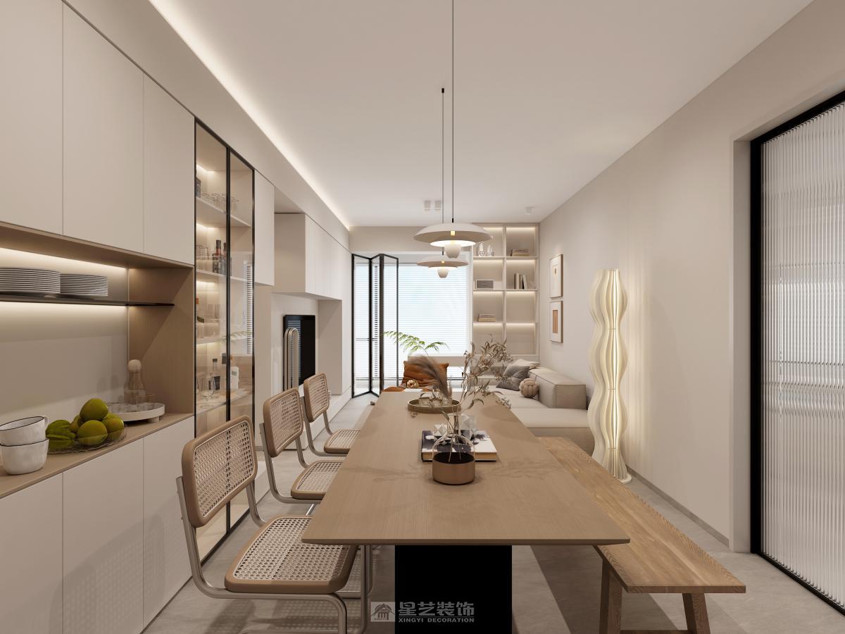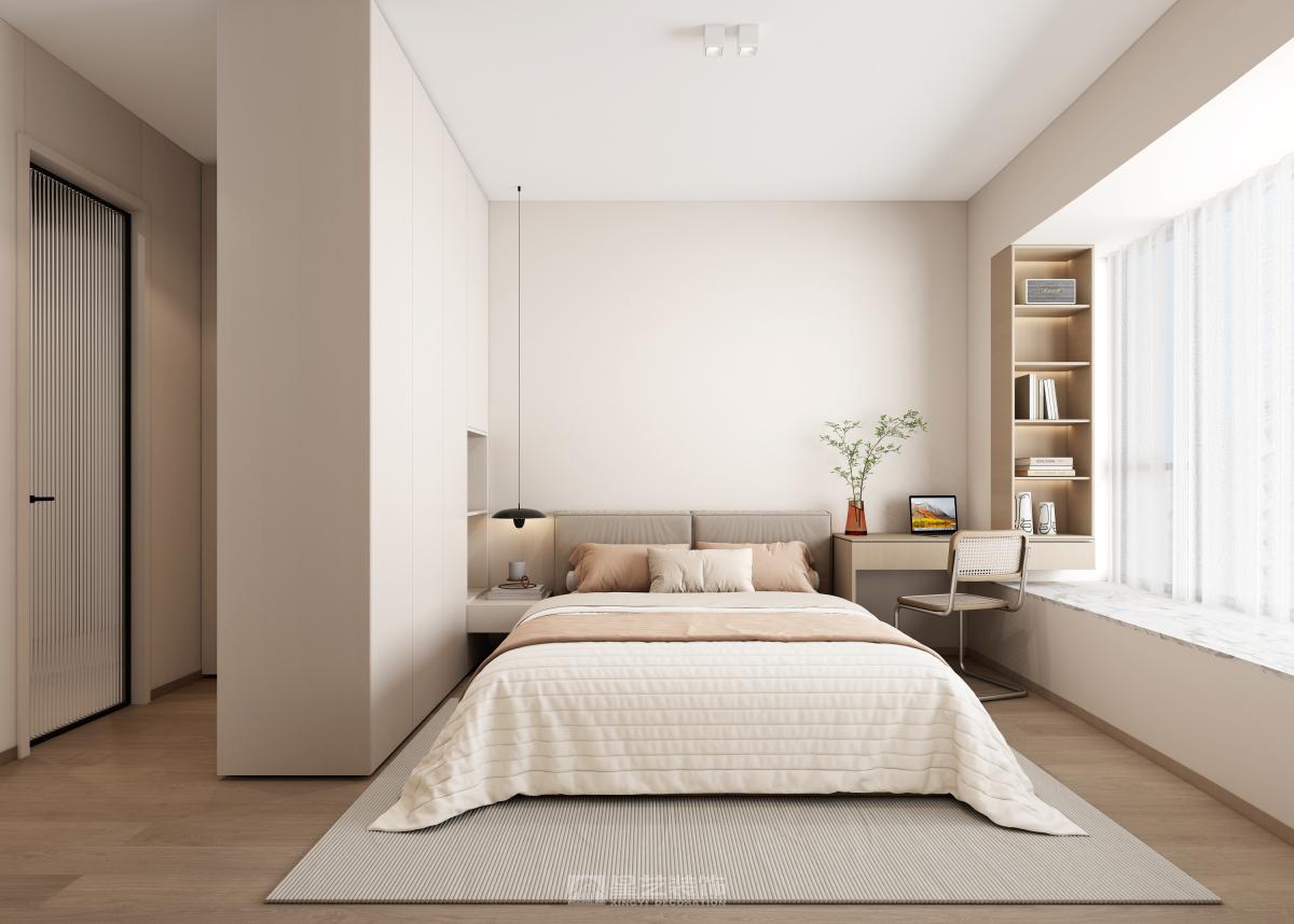 暖色为基础配色,通顶衣柜节省空间,整体简洁利落,主打静谧休憩感