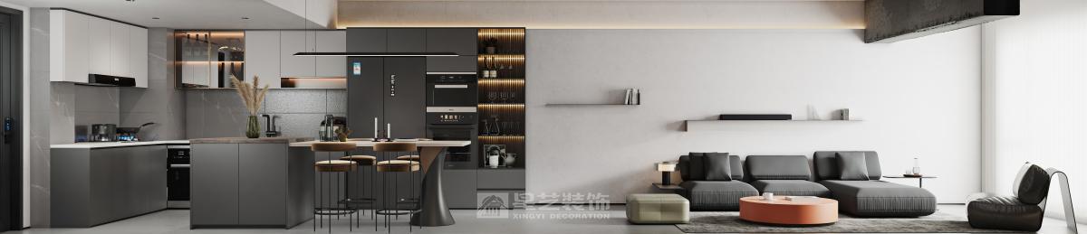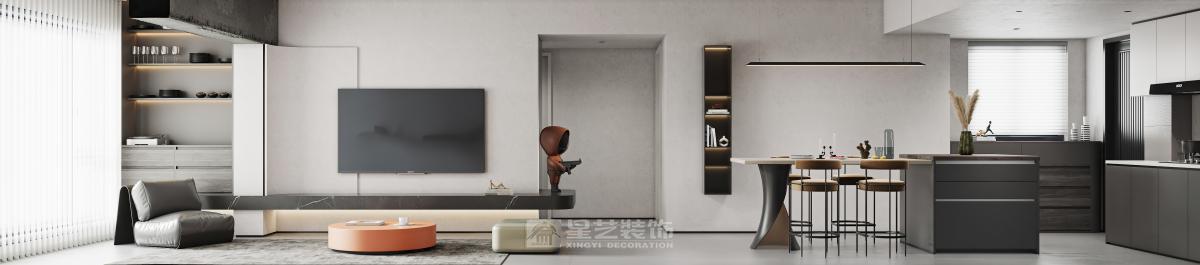 本设计采用现代极简高级灰的风格,旨在为居住者打造一个简洁舒适又极具品质感的空间。 空间布局上,秉持开放性原则,减少不必要的隔断,使各功能区自然融合,营造出流畅开阔的活动动线。客厅、餐厅、厨房等区域相互贯通,视觉上更显通透大气。