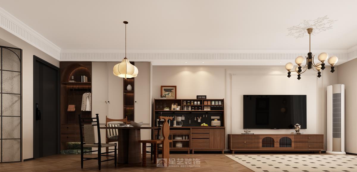 胡桃木的温润+黄铜的暗哑,以天然木材为底色,在简约中透露出温馨的感觉