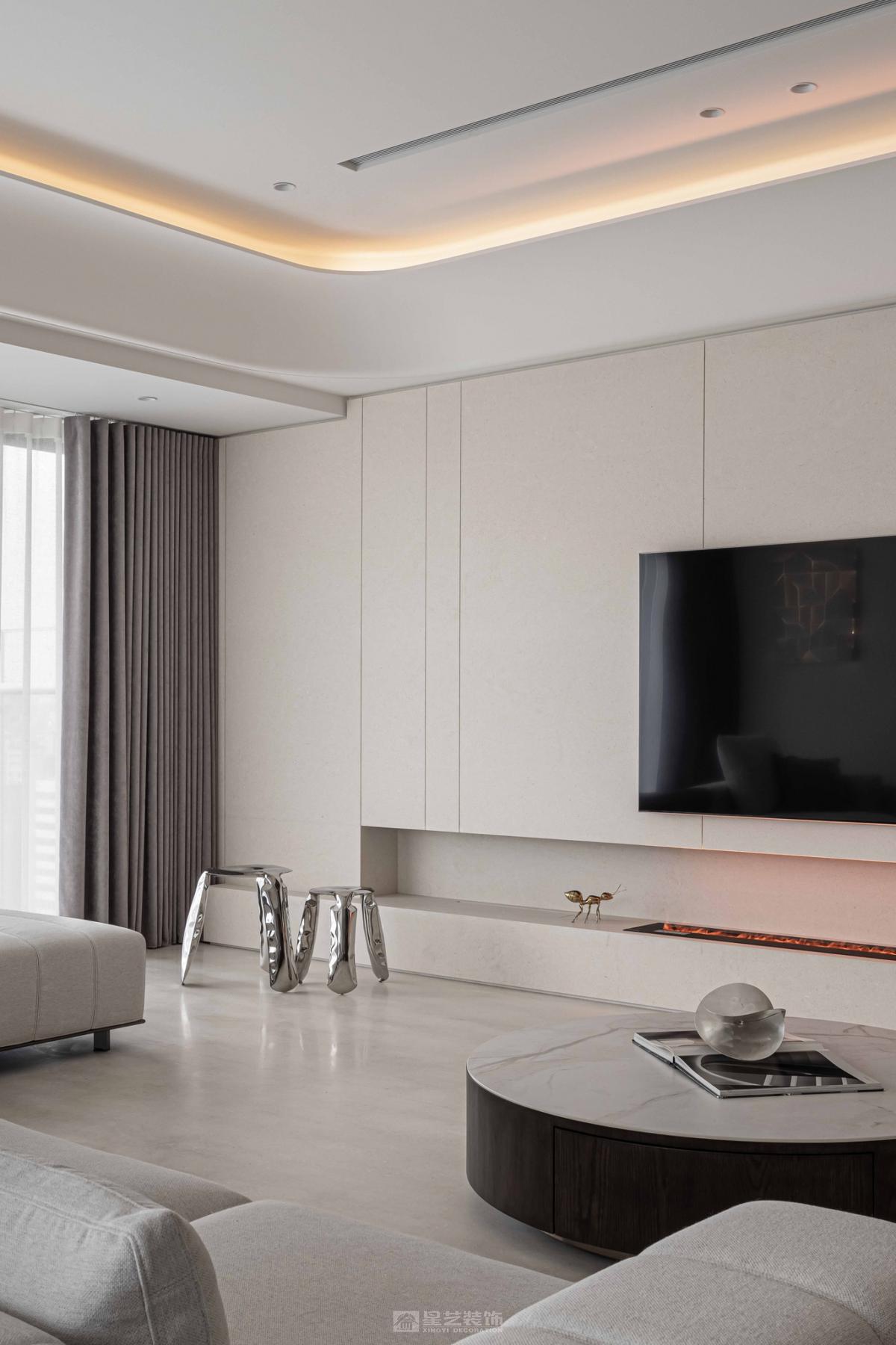本案以现代风,不显端庄大气,外景与室内结合,让家更温暖