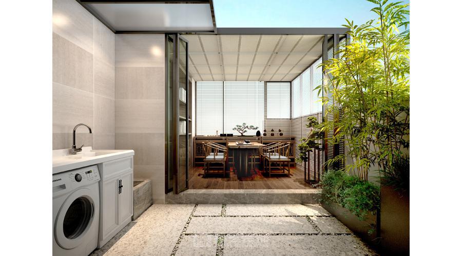 雍华府,轻奢风结合业主的禅意感觉,露台搭建阳光茶室,喝茶爽歪歪。