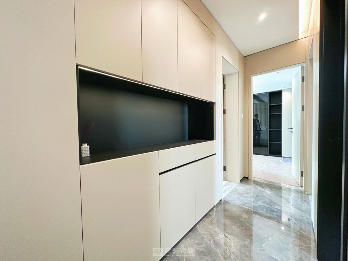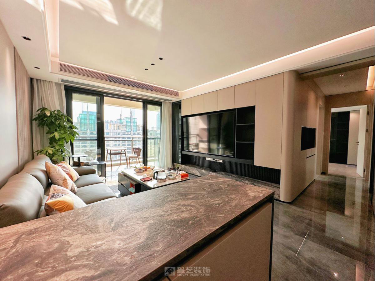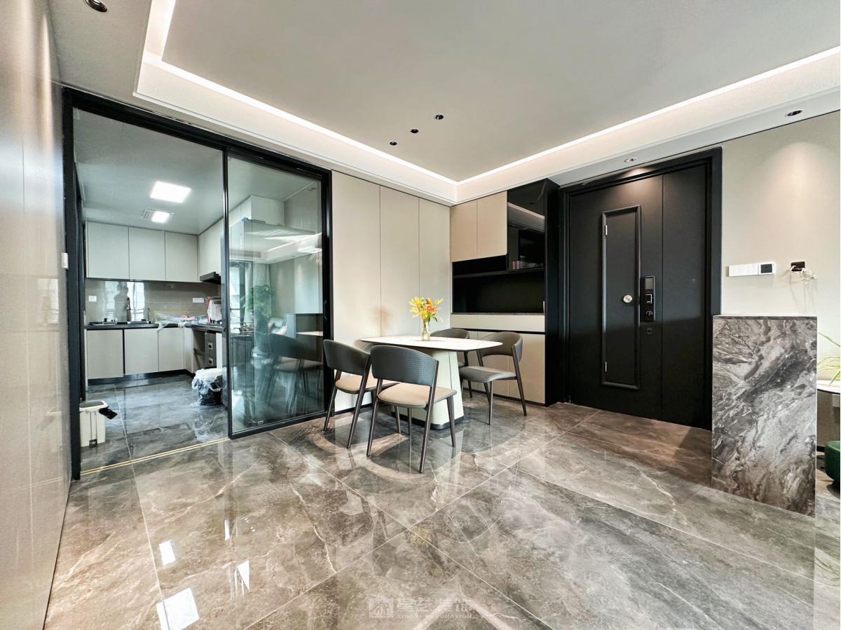 运用岩板、皮革与金属材质,以高级灰与暖咖为基调。通过精炼线条与柔和灯光,于平层中构筑出通透、精致且充满温度感的现代轻奢生活场域。