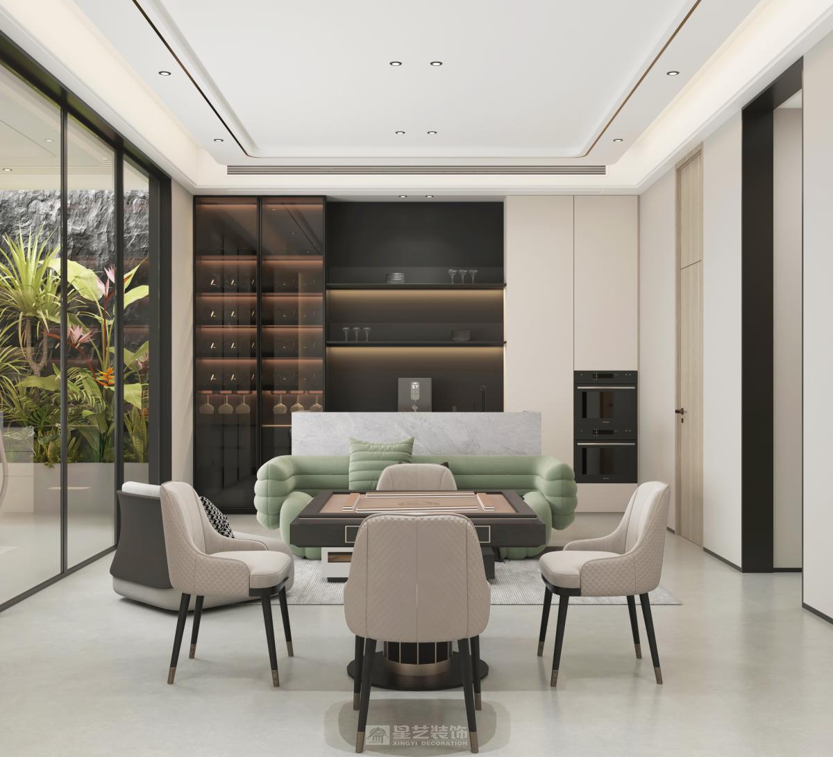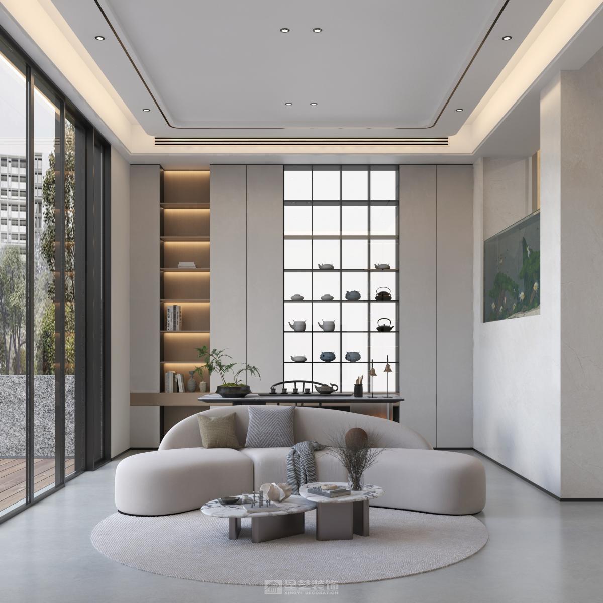 设计说明: 以纯粹几何体块构筑建筑形态,运用岩板、玻璃与木饰面。通过开阔空间序列、隐形收纳与定制化光影系统,营造出极具呼吸感与未来质感的静谧居所。