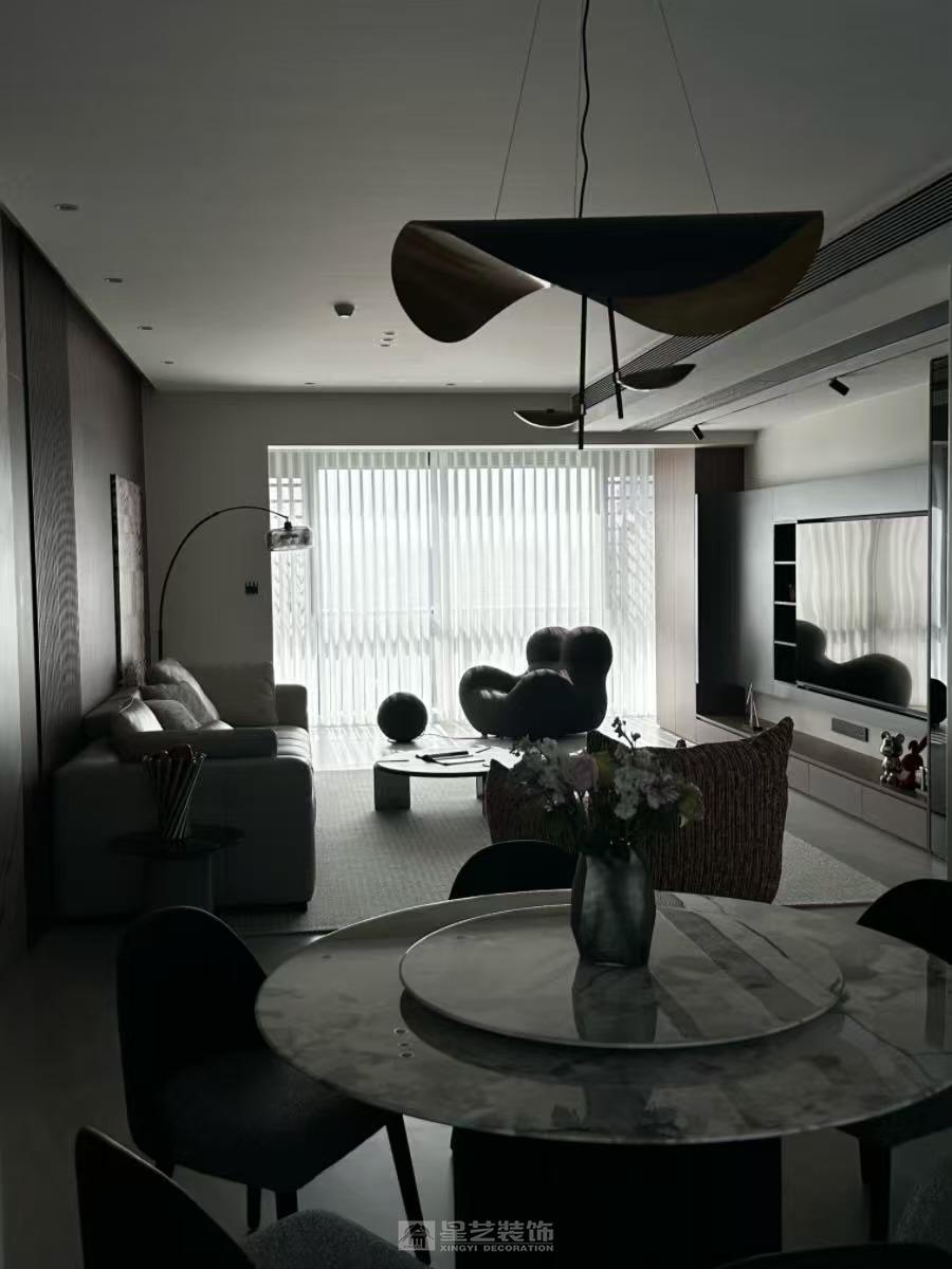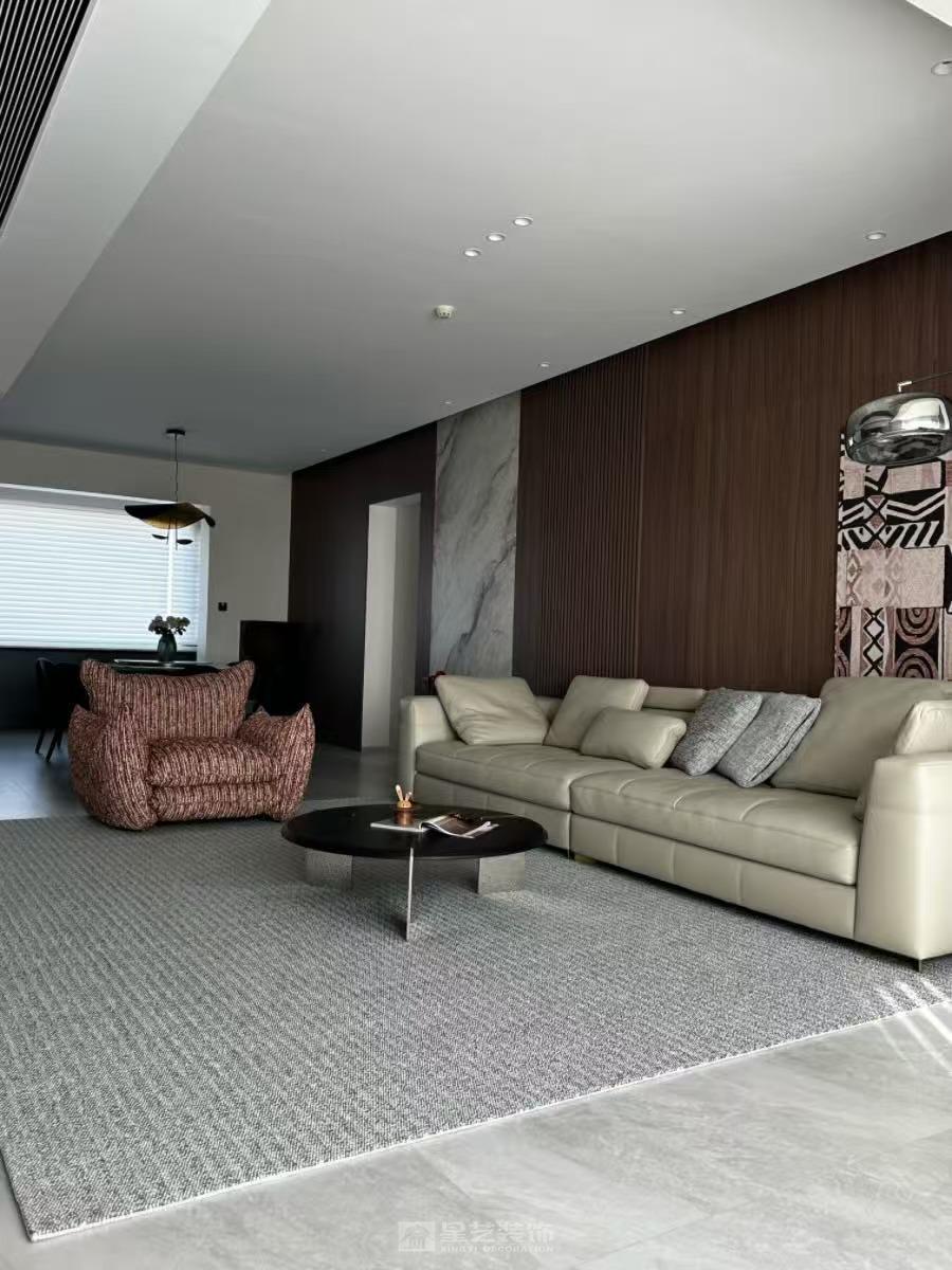 整体设计风格为意式轻奢风格,用了胡桃木和高级灰护墙板色调去装饰空间,图片为现场实拍实景案例