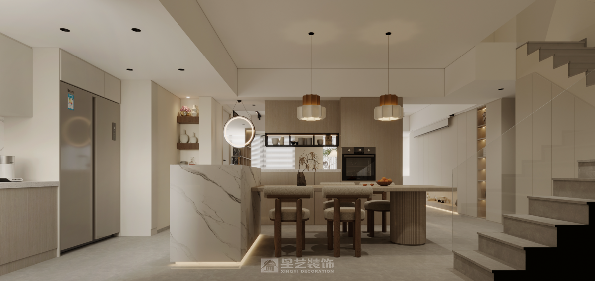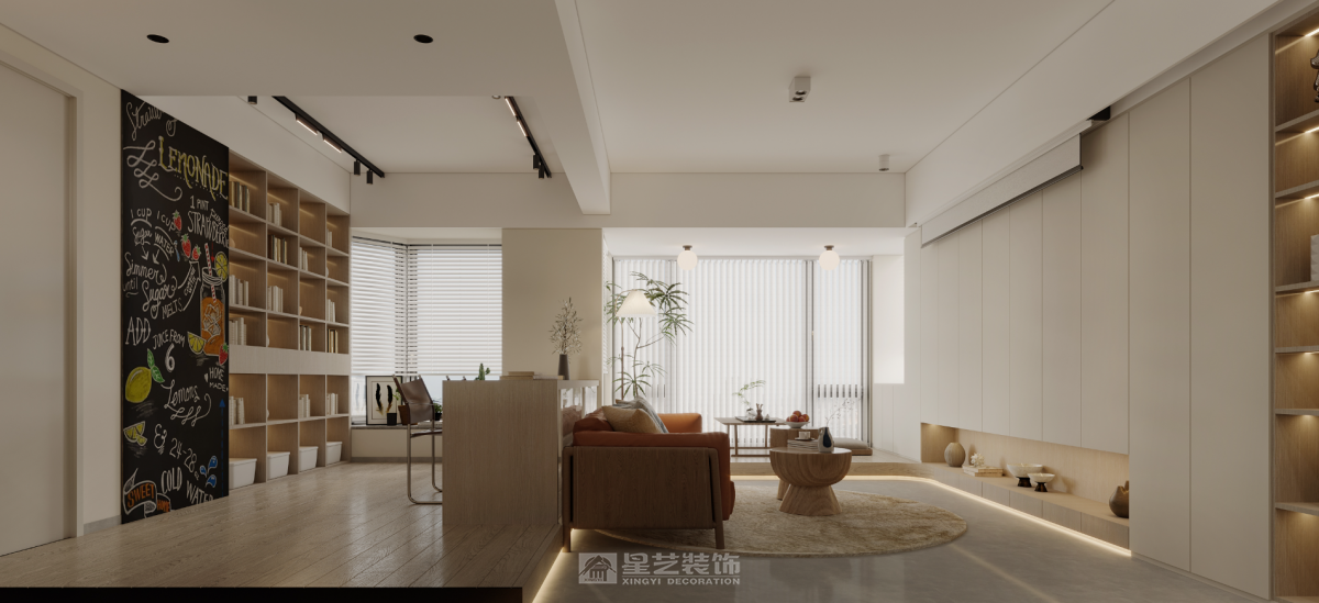 这是一套顶楼复式,希望两个孩子有更多共同相片的时间,利用阳光好的优势打造绝佳的阅读育娃空间,以浅原木色为主,使用容错率与兼容性更墙