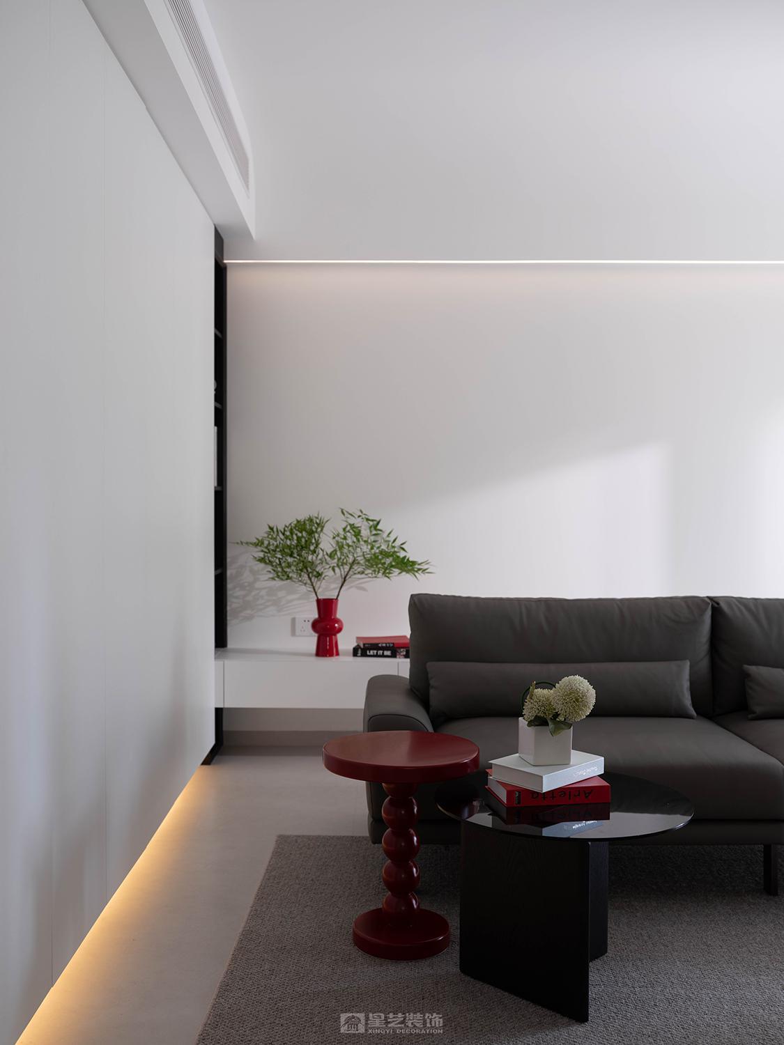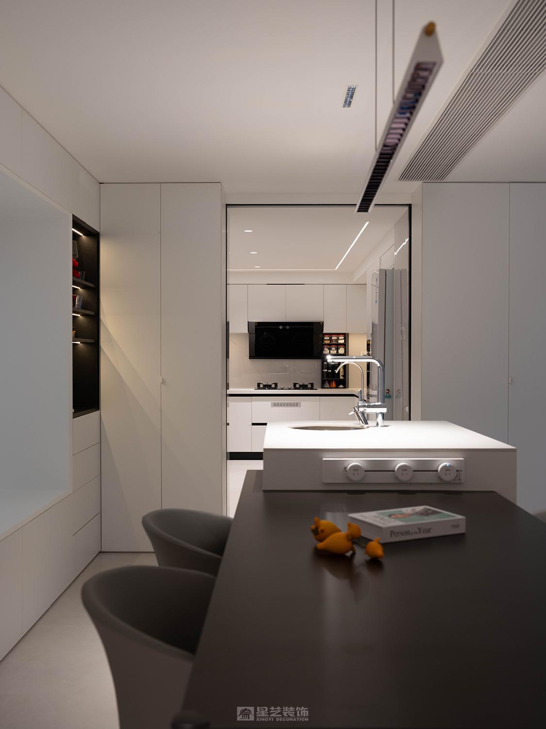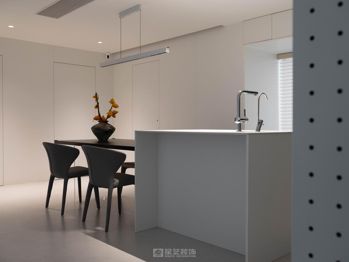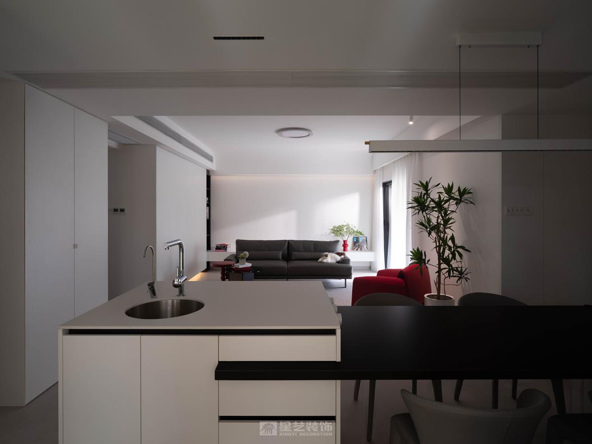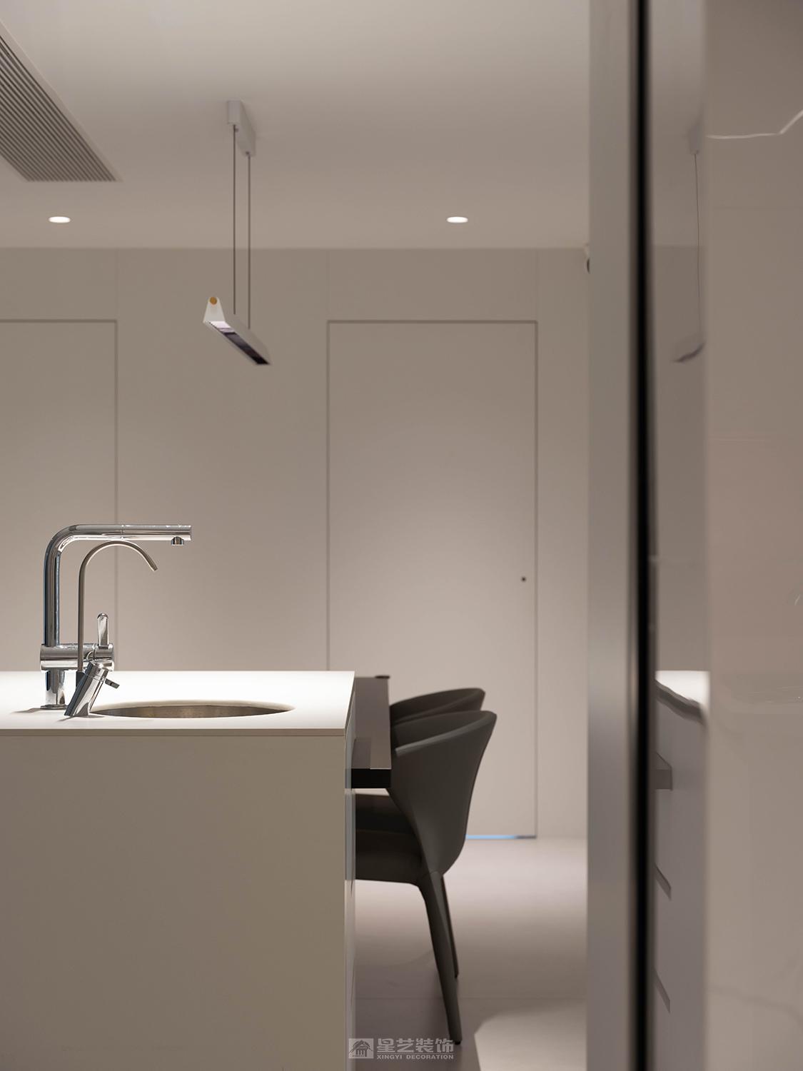 客户身体力行追求极简生活,家里确实收拾得干净明亮,黑白灰的简洁有力,是对极简生活最好的表达,布局方面把厨房与储物间打通,客房缩小,合得常用的空间变得开阔明亮,生活的幸福感大大提升,138方看起来像158方的舒适感