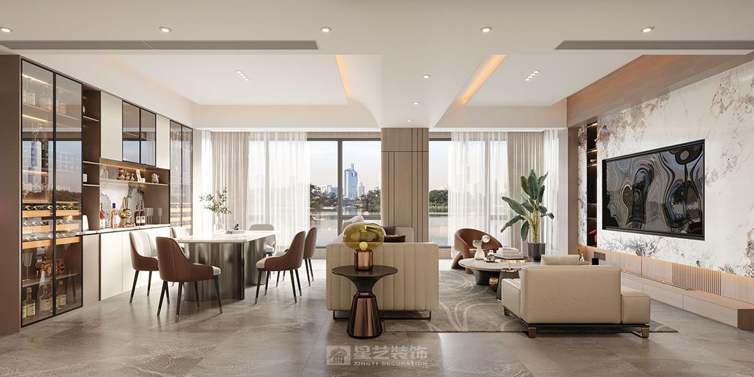 本项目为大平层住宅空间设计,核心设计理念为「温润轻奢,通透共生」,以现代设计语言为基底,融合轻奢质感与生活化的温暖细节,打破传统空间的封闭界限,打造兼具美学格调与居住舒适度的品质居所。