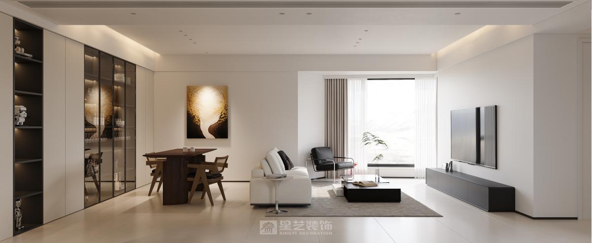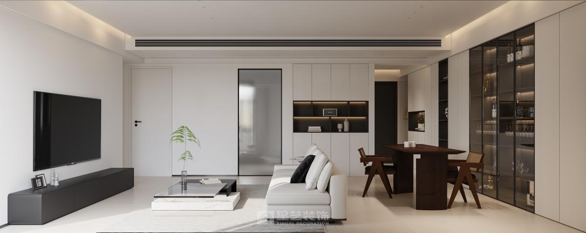 半开放式的布局增强空间的通透感与互动性。沙发、茶几与电视区域形成流畅的交流空间,同时与厨房餐厅相连,方便家人互动聚会增加氛围感~