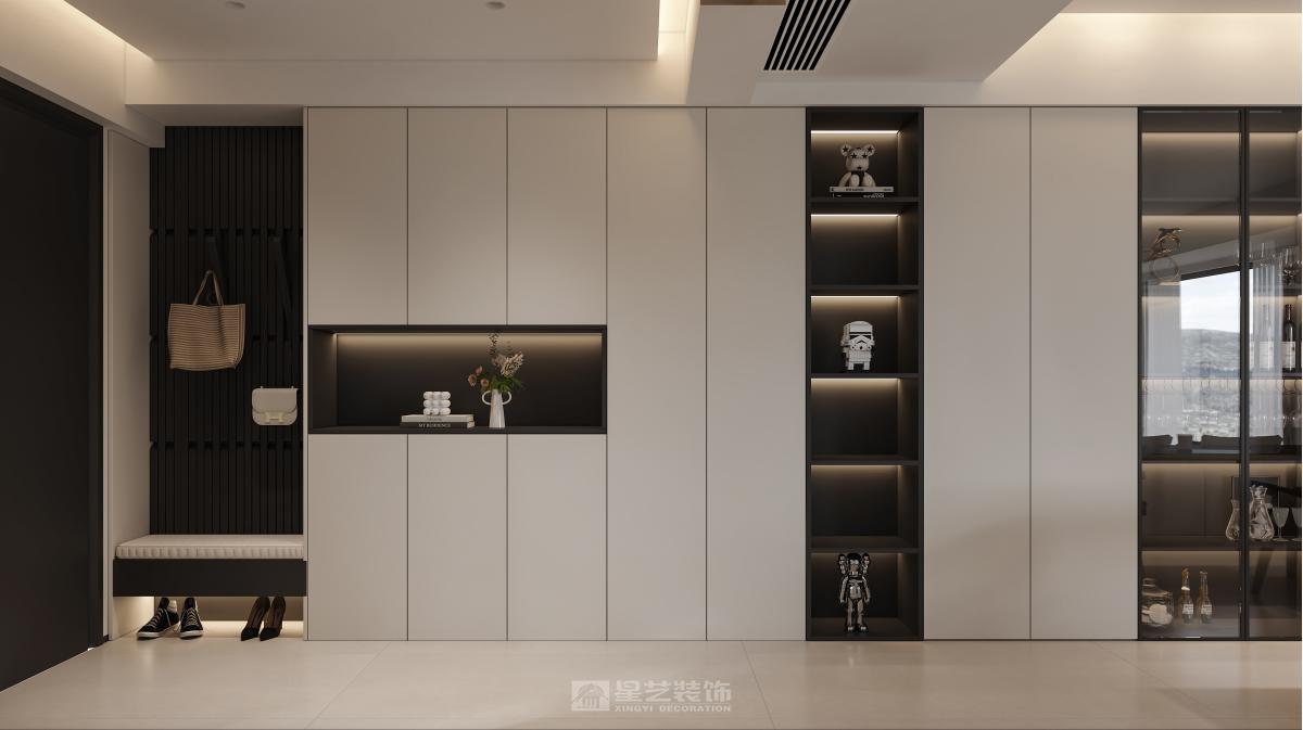 本案是一对年轻夫妻,未来准备要宝宝,所以保留卧室比较多,整体空间以米白色、深灰色为主色调,营造出简洁、优雅的基础氛围;搭配暖色的地板与家具,增加空间的稳重感与质感;
